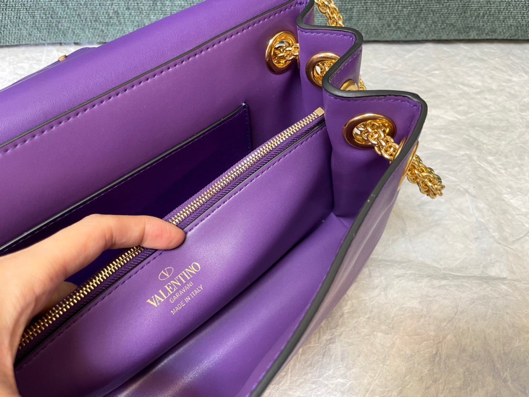 Valentino Stud Sign Shoulder Bag In Purple Nappa Leather