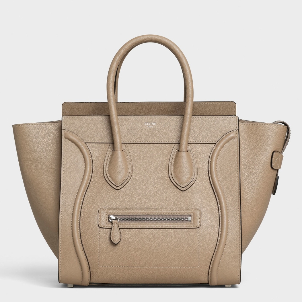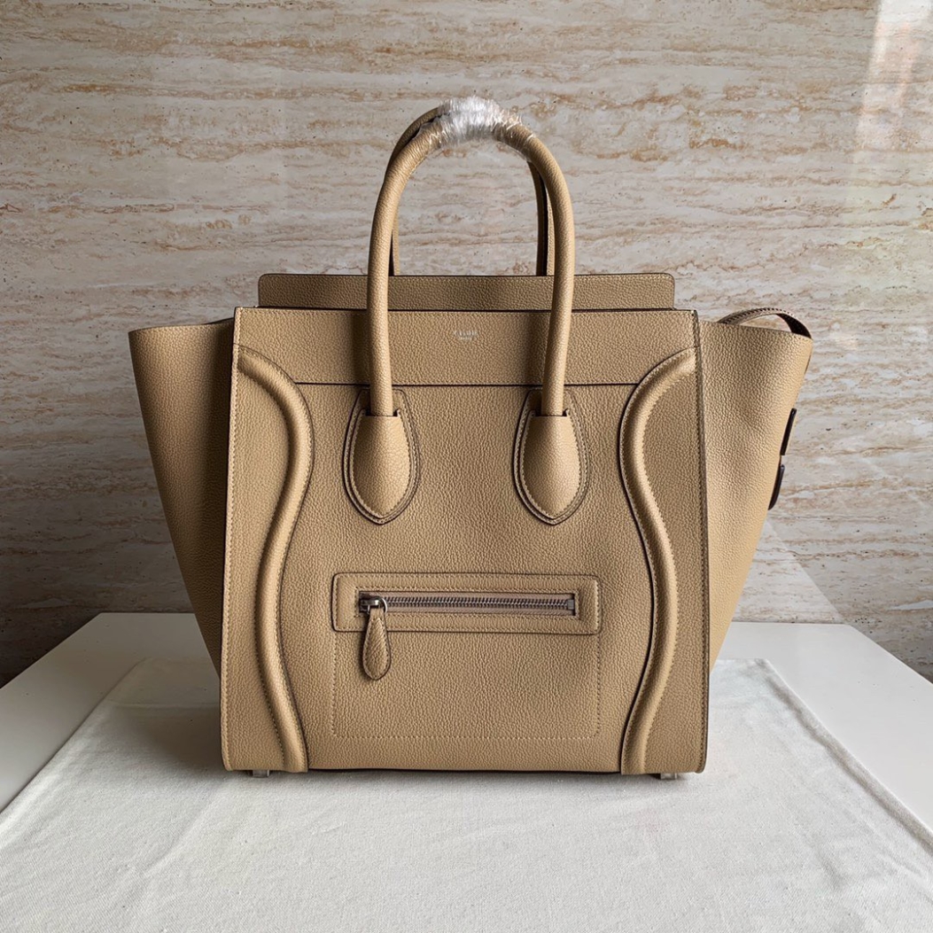 La Celine Luggage Tote è, senza dubbio, una delle borse più ricercate al mondo. Caratterizzata da uno stile casual ma lussuoso, è semplice e distintiva con i suoi manici robusti e le cuciture dettagliate. Questa Mini Luggage Tote presenta i caratteristici manici superiori, una cerniera frontale con pelle di vitello bottalata all'esterno e un interno in pelle scamosciata.