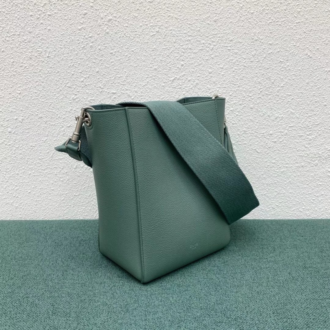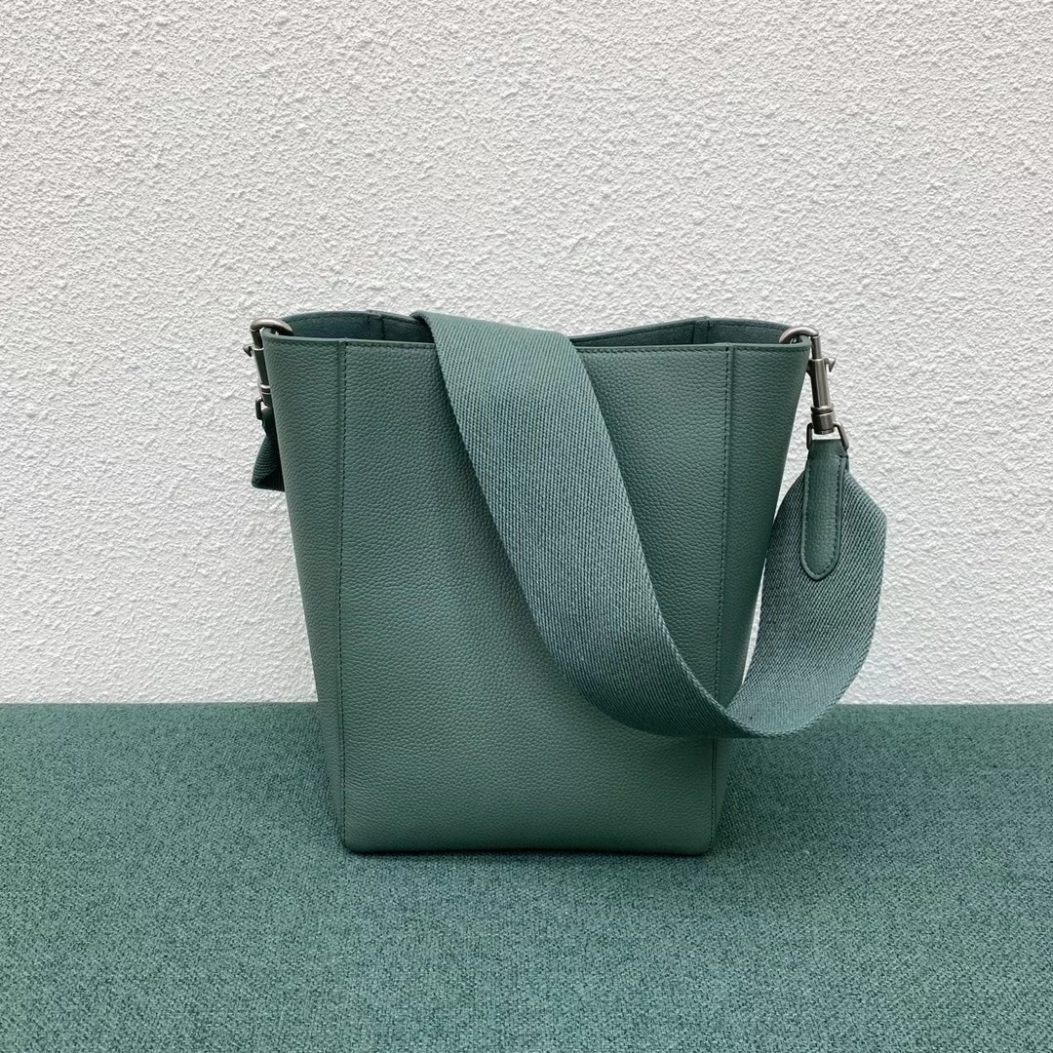 One of the iconic bags from the house of Celine, the Sangle Seau Bag is structured and chic. This stunning bag features an oversized hook-and-eye clasp closure and a detachable canvas shoulder strap. The Sangle Seau bag is a modern look that can be worn with almost any outfit, classic or casual.
