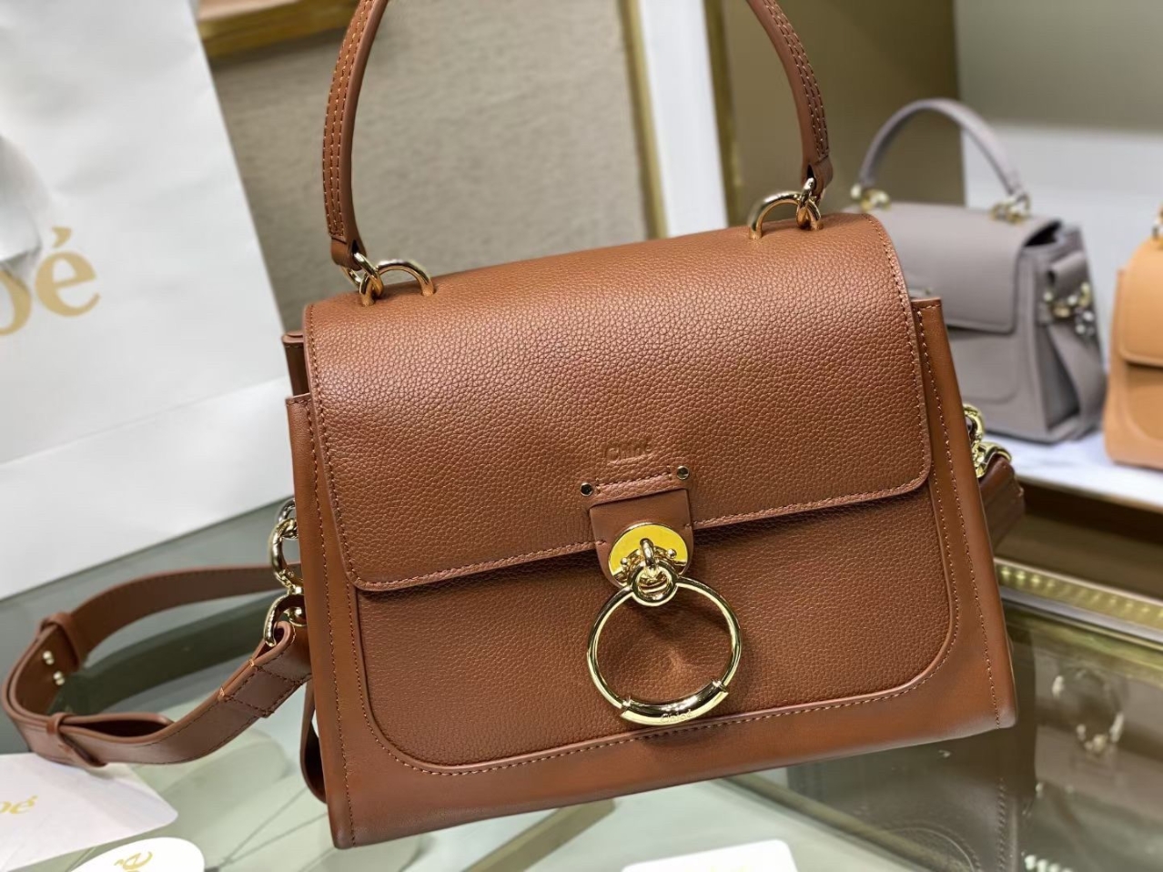 Instantly recognizable thanks to the polished gold ring embellishing the front, Chloé’s Tess Day bag is the perfect everyday companion. It has been crafted from panels of smooth and grained leather in a caramel shade that will work with any outfit. It may be small but still has enough room to store your essentials.