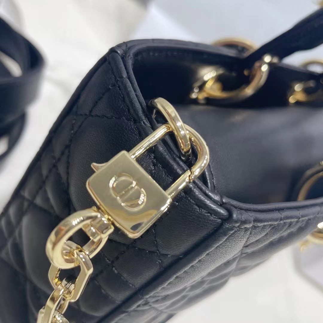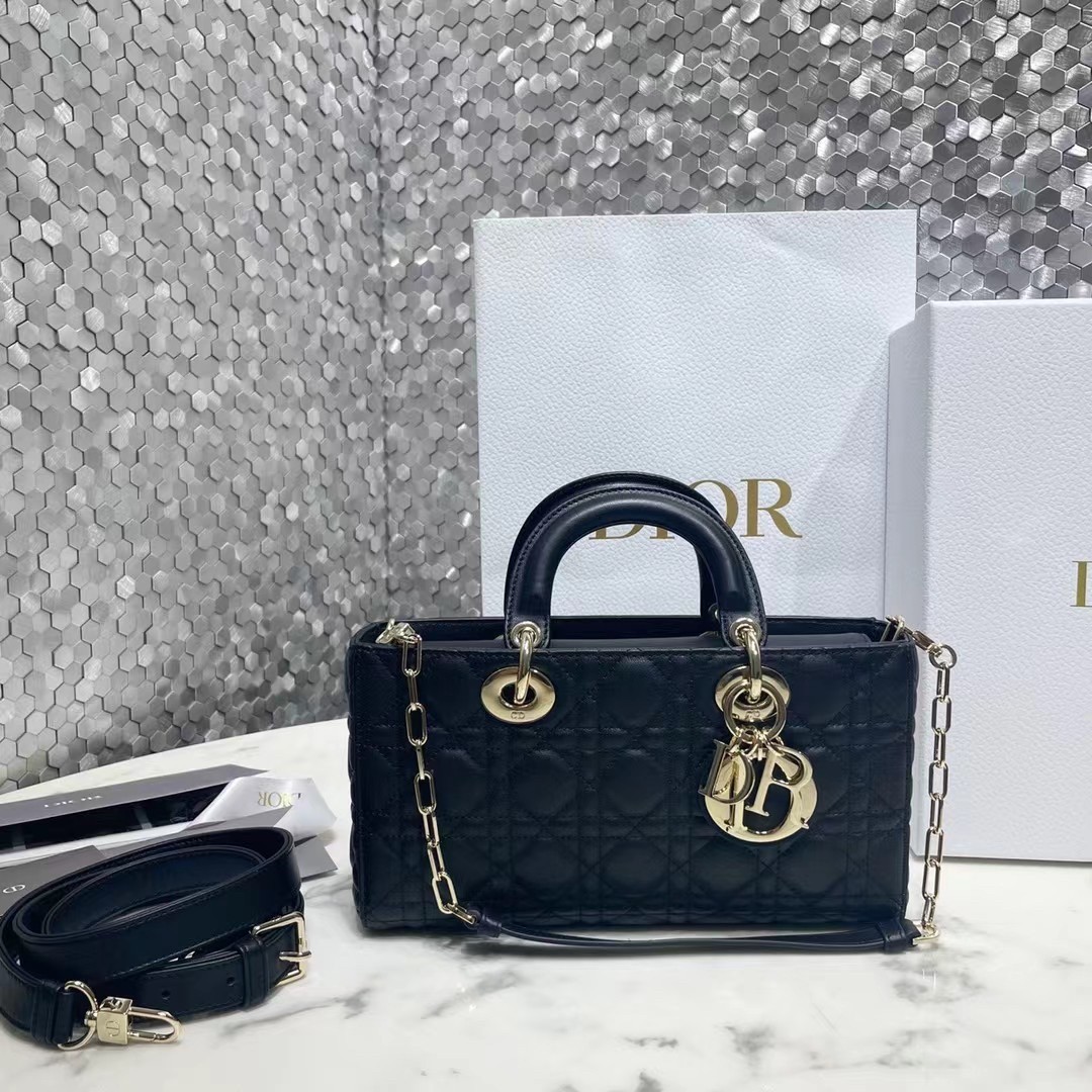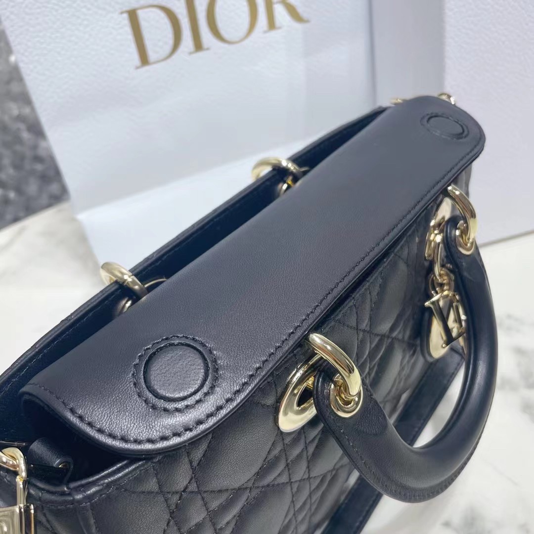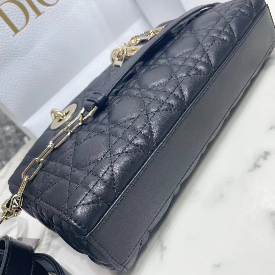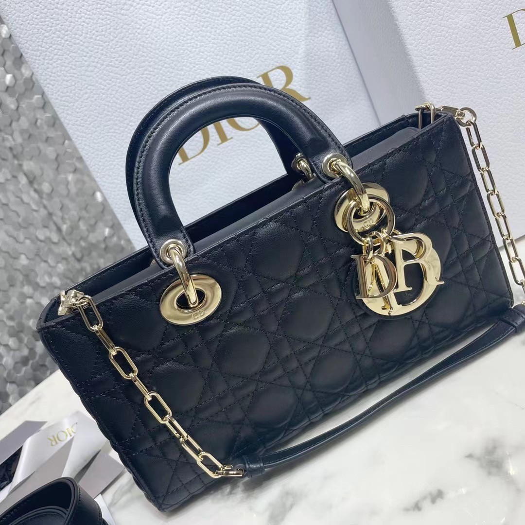 The Lady D-Joy bag captures the House’s vision of elegance and beauty by showcasing the iconic streamlined aesthetic of the Lady Dior line. Crafted in lambskin with Cannage stitching, the refined and timeless style is enhanced by pale gold-finish metal ‘D.I.O.R.’ charms elegantly embellishing its silhouette. Featuring one removable chain shoulder strap and another adjustable and removable leather shoulder strap, the Lady D-Joy bag can be carried by hand, worn over the shoulder or crossbody as a daily companion.