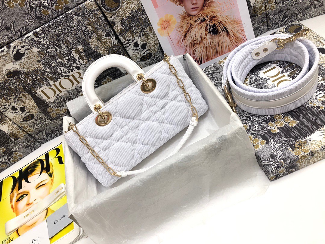 The Lady D-Joy bag captures the House’s vision of elegance and beauty by showcasing the iconic streamlined aesthetic of the Lady Dior line. Crafted in Macrocannage technical fabric, the refined and timeless style is enhanced by pale gold-finish metal ‘D.I.O.R.’ charms offering an elegant allure. Featuring one removable chain shoulder strap and another adjustable and removable technical fabric shoulder strap, the Lady D-Joy bag can be carried by hand or worn crossbody as a daily companion.