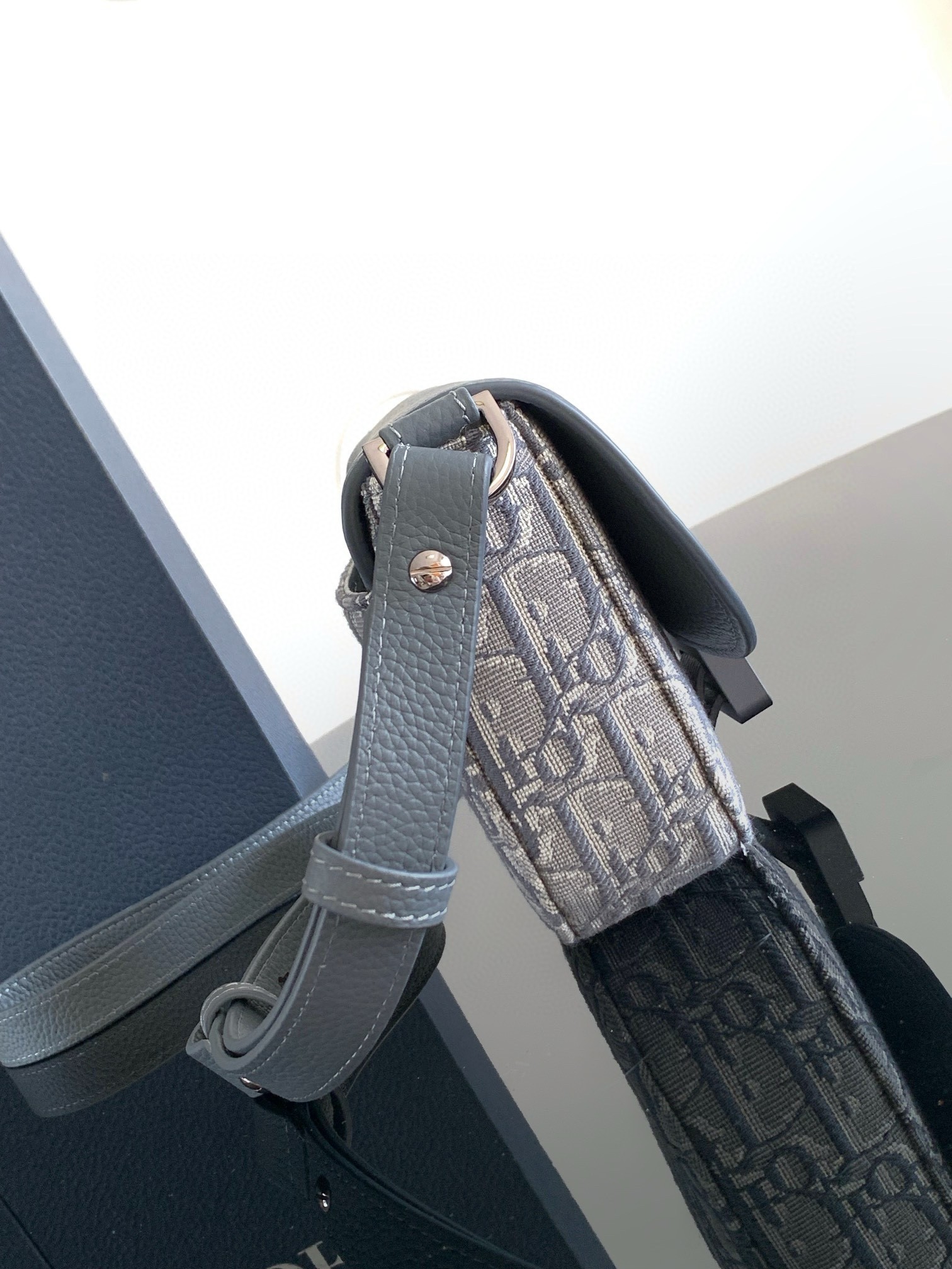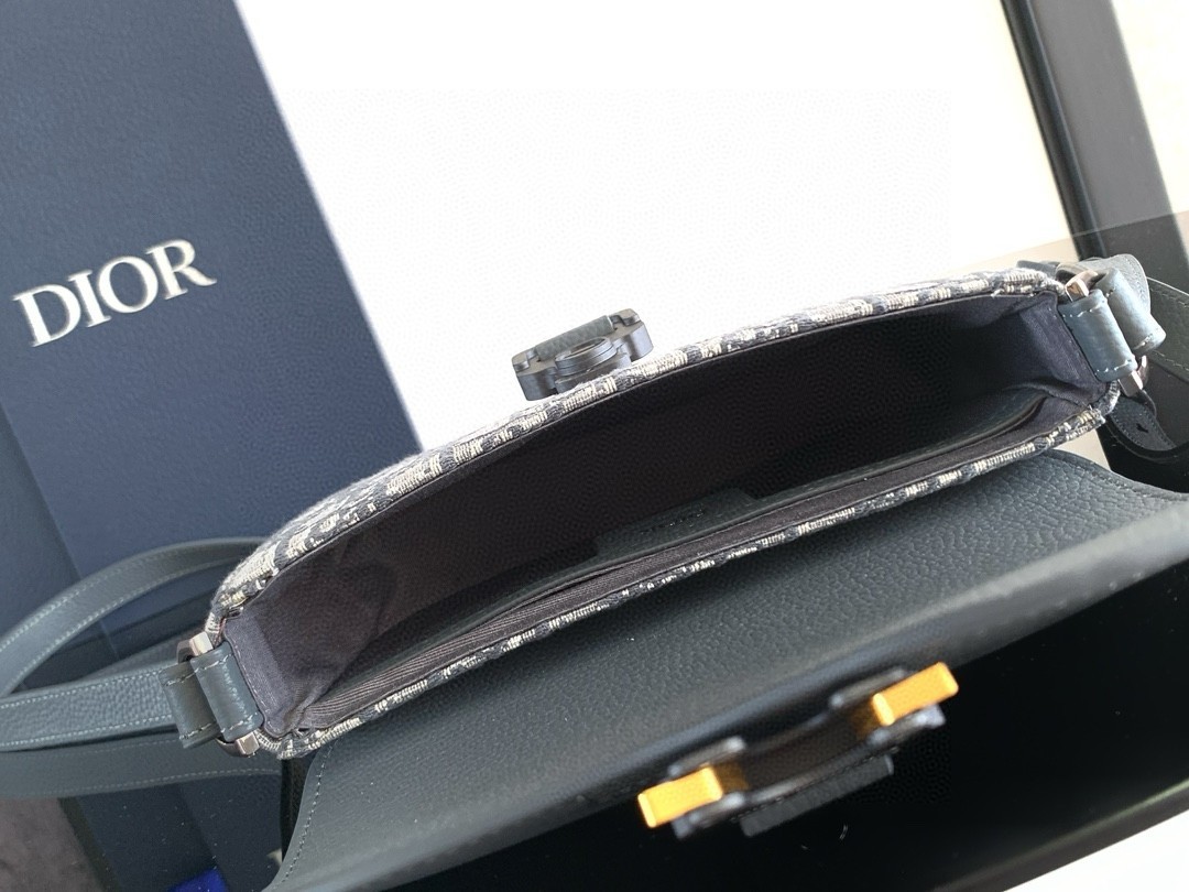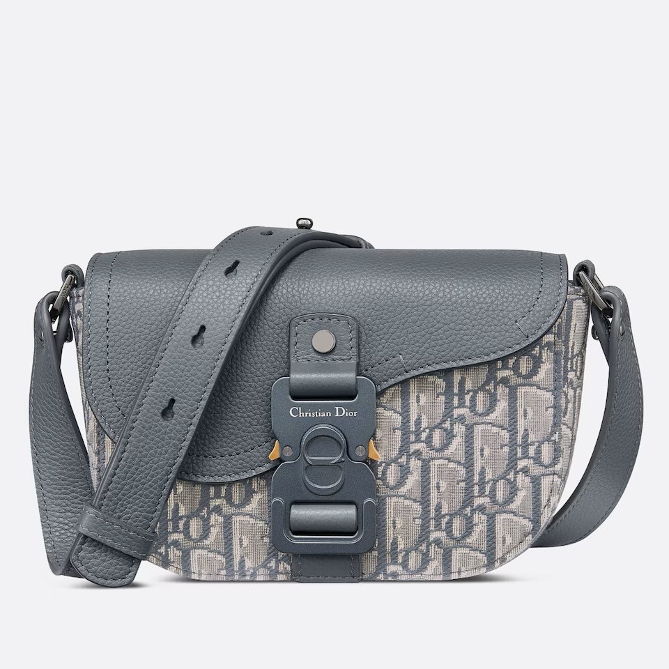 The Saddle messenger bag with flap enhances the iconic line with a modern design imbued with subtle elegance. Crafted in Dior Oblique jacquard, it features a tonal grained calfskin Saddle flap with an aluminum Christian Dior signature buckle. The removable and adjustable leather shoulder strap allows the miniature bag to be carried by hand, worn over the shoulder or crossbody.