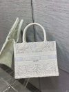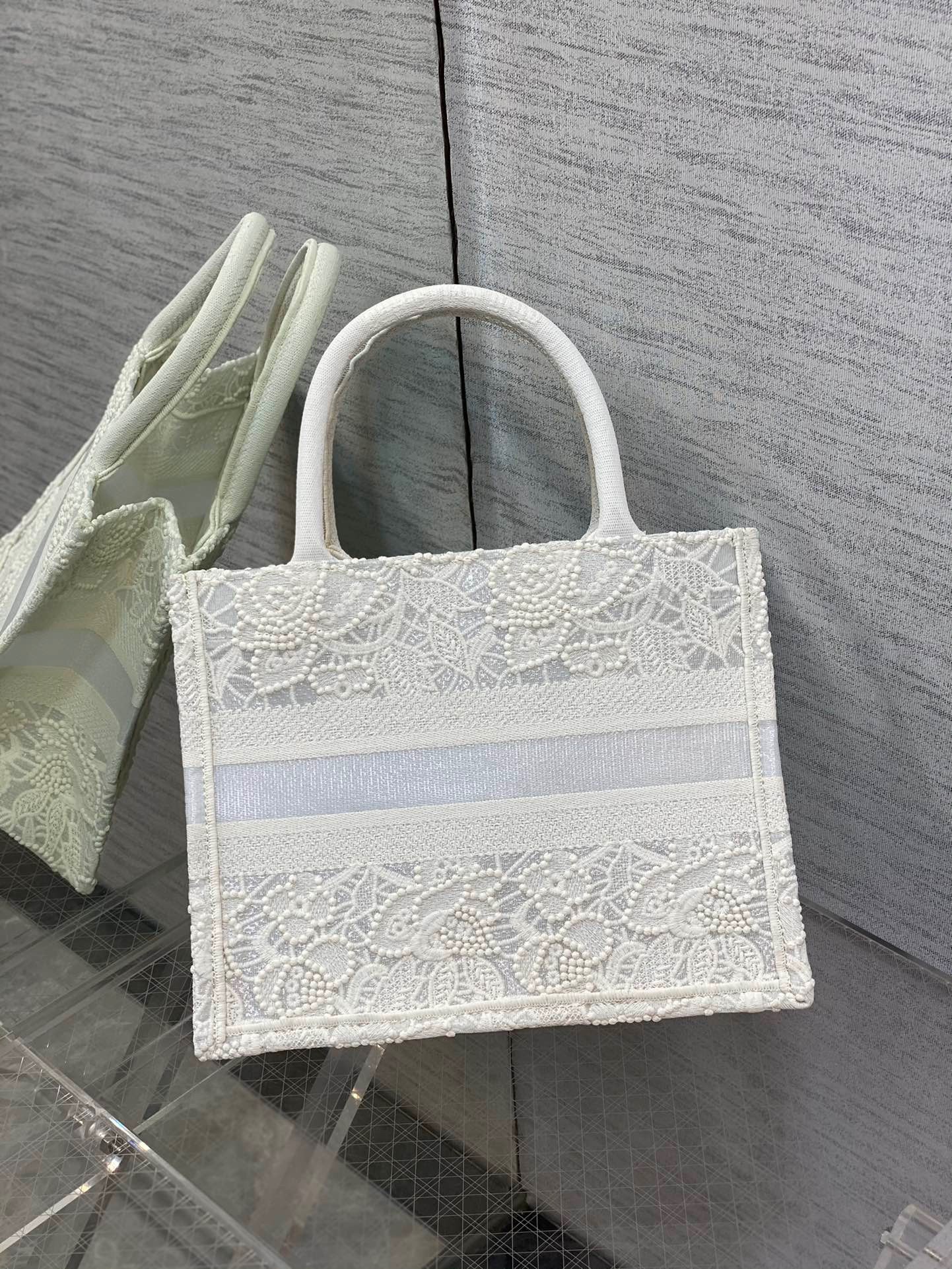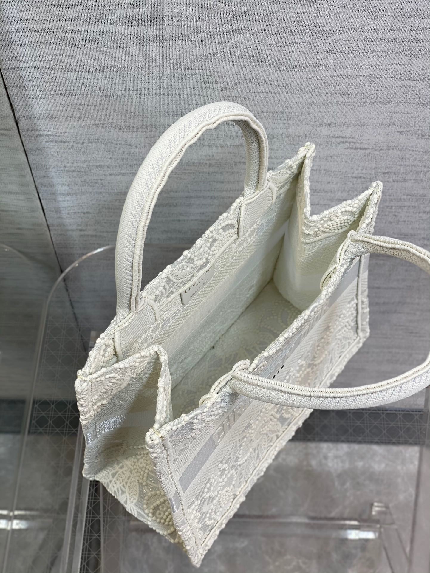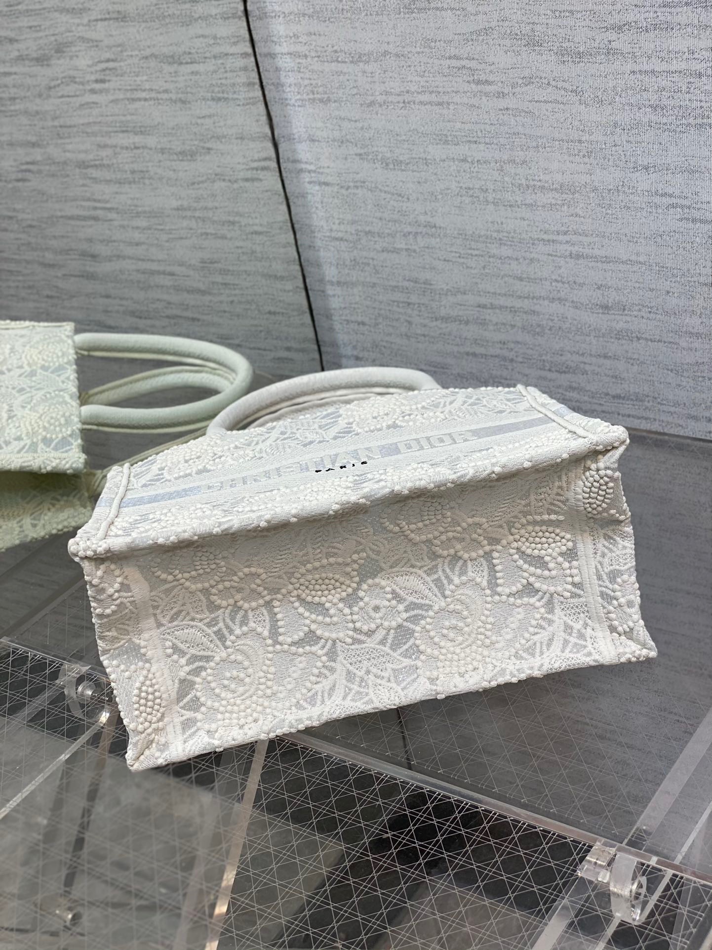 Introduced by Maria Grazia Chiuri, Creative Director of Christian Dior, the Dior Book Tote has become a staple of the Dior aesthetic. Designed to hold all the daily essentials, the style is fully embroidered with a natural macram?? effect, a true statement of elegance. Adorned with the ‘CHRISTIAN DIOR PARIS’ signature on the front, the small tote exemplifies the House’s signature savoir-faire and may be carried by hand.