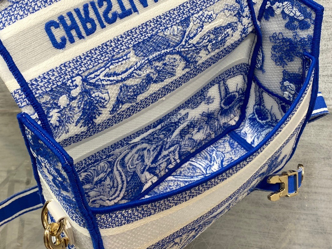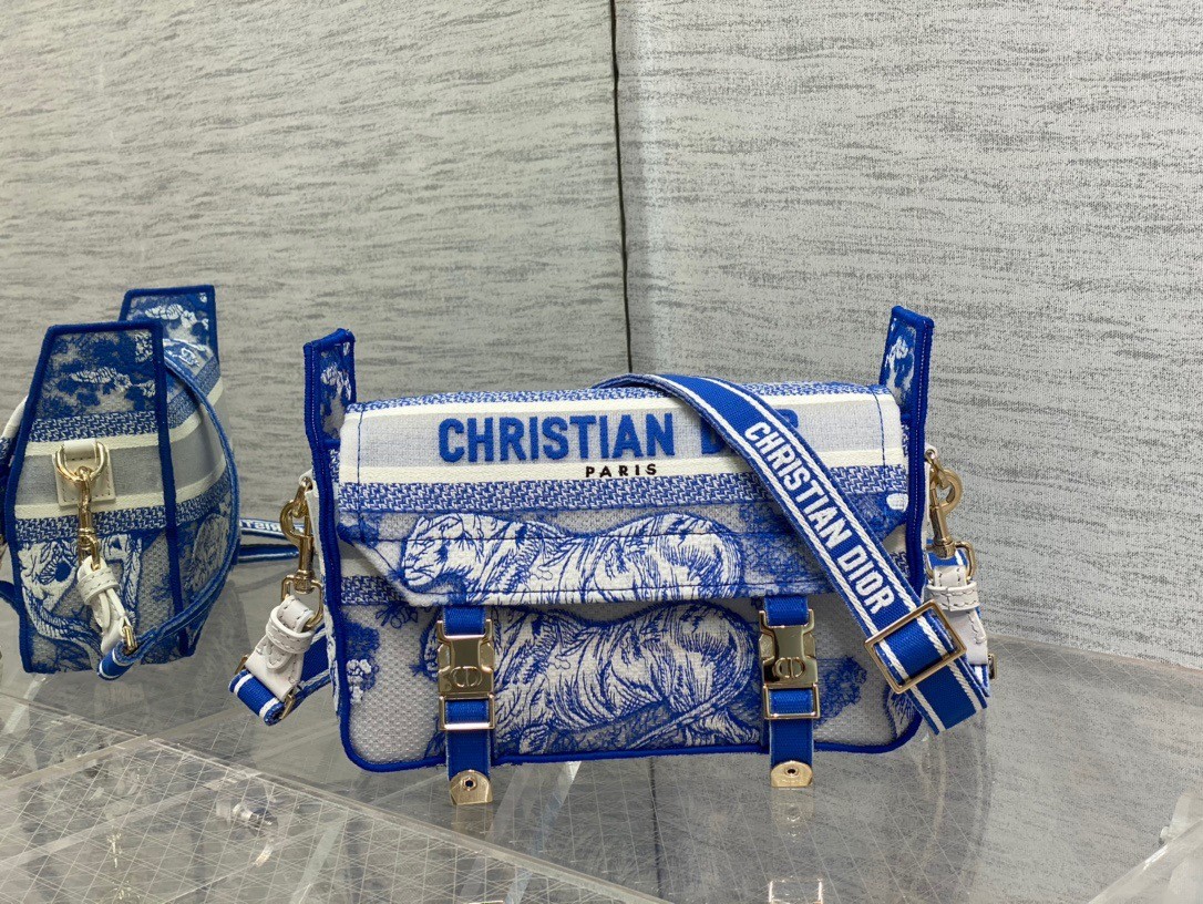 Maria Grazia Chiuri has updated the classic messenger bag by adding signature Dior details for a relaxed and modern look. Part of the Dioriviera capsule collection, the bag is crafted in transparent canvas with a Toile de Jouy motif. A ‘CHRISTIAN DIOR PARIS’ signature flap, as well as sportswear-inspired ‘CD’ buckles complete the small design. Equipped with an adjustable and removable shoulder strap, the compact messenger bag can be worn over the shoulder or crossbody.