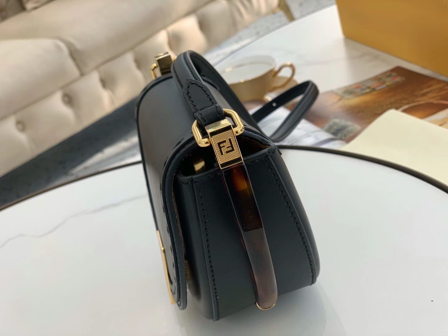 – Metallic closure with iconic FF motif