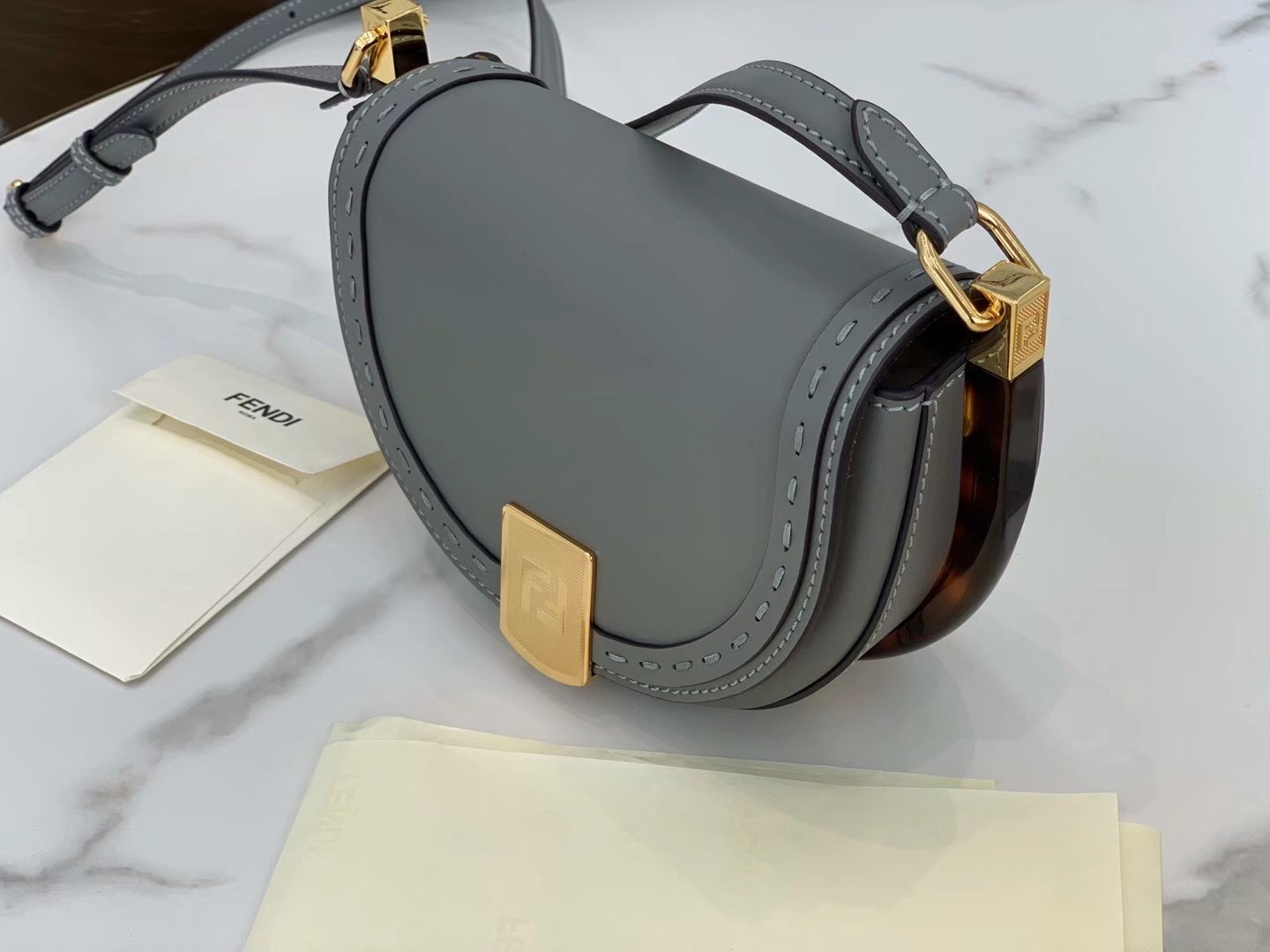 – Hot-pressed Fendi Roma under the flap