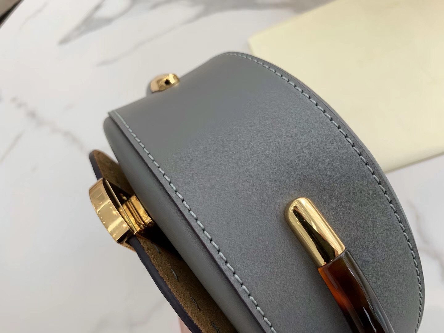 The Moonlight bag takes its name from its crescent shape, which also recalls, for other things, the lunar year collection launched last January and so dear to the Maison. To be used cross-body or as a handbag, the Moonlight presents all the distinctive codes of the Sunshine Shopper in a round design embellished on the sides with characteristic rigid tortoiseshell details. Bold, feminine and super cozy, the adjustable shoulder strap in contrasting colors that allows, as we anticipated, to carry it cross-body or on the shoulder.