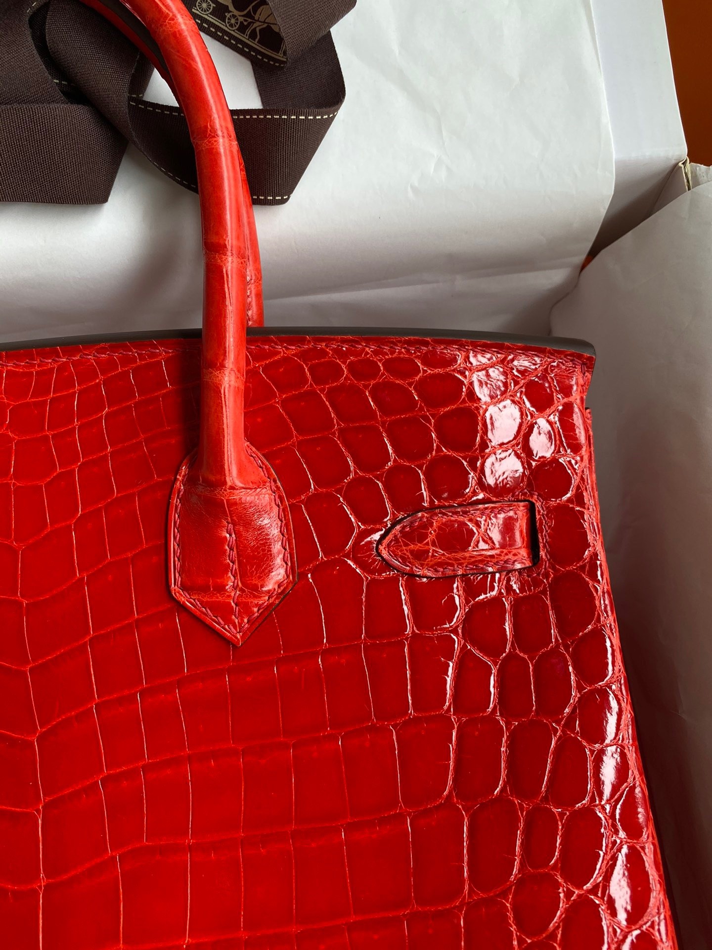 The original Herm??s Birkin bag was inspired by and named after 60’s fashion icon Jane Birkin. It was designed to be a luxury bag that would meet the needs and stand up to daily use by a multitasking woman on the go. Done in perfect shiny Niloticus Crocodile, comes directly from Africa’s Nile River in a region of Zimbabwe, this skin offers a matte finish and a more distinct pattern. This 30cm Birkin bag is the epitome of style, class, and timeless elegance, not to mention the height of luxury. This Birkin will make the perfect addition to any collection.