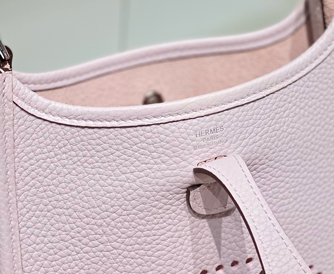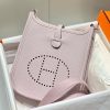 This hard to find and adorable Hermes Evelyne TPM Bag is a classic that’s great for everyday use or when you feel like traveling lightly for the day. This elegant bag is particularly stunning in the taurillon Clemence, with a Cavale canvas strap and Palladium hardware. This bag has a short shoulder strap and the classic perforated Hermes, “H” which serves as a subtle indicator that it is another bag that’s highly sought after by Hermes collectors and luxury bag fans.