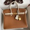 Special Order Birkins, or Horseshoe Stamp (HSS) as they’re often called, are a category unto themselves. The opportunity to special order a Birkin is only offered to top clients, and the implication is that this Birkin could be an entirely unique combination. This Birkin 25 bag is done in taurillon Clemence leather, giving it a more casual look. The body is gold, paired with craie handles, straps, piping and interior. Finished with hardware the overall look is unique and the hard handles are a smart choice for usability.