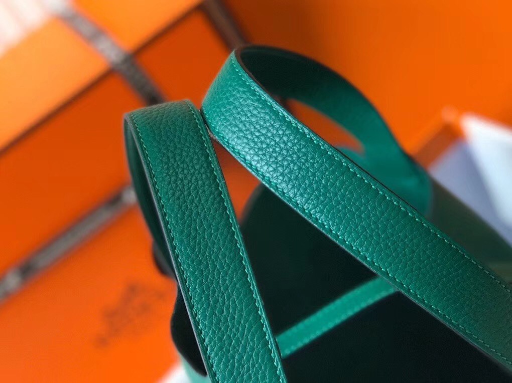 Look into some more details of this streamlined design. In all its uniqueness, it has a cross-over leather strap to add a bonus security to your bucket tote, with your iconic Hermes Palladium lock and key. This unique and lovely bag is perfect for everyday use as it has tons of interior space for all your necessities.