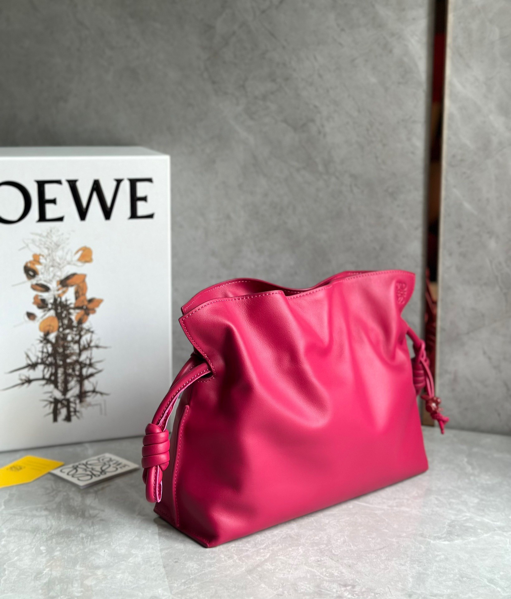 It*s hard to believe that the Flamenco clutch bag from LOEWE was born in the 1970s, as its character is undeniably modern. While serving as proof of fashion*s cyclical nature, it doubles up to prove the timelessness of the fashion house in question. This compact monochrome version is crafted in nappa calfskin with tonal hardware, a tonal jacquard strap and a tonal bunny charm in porcelain. It goes without saying that the slouchy exterior and knotted drawstring adornments won*t ever fall out of fashion*s favour.