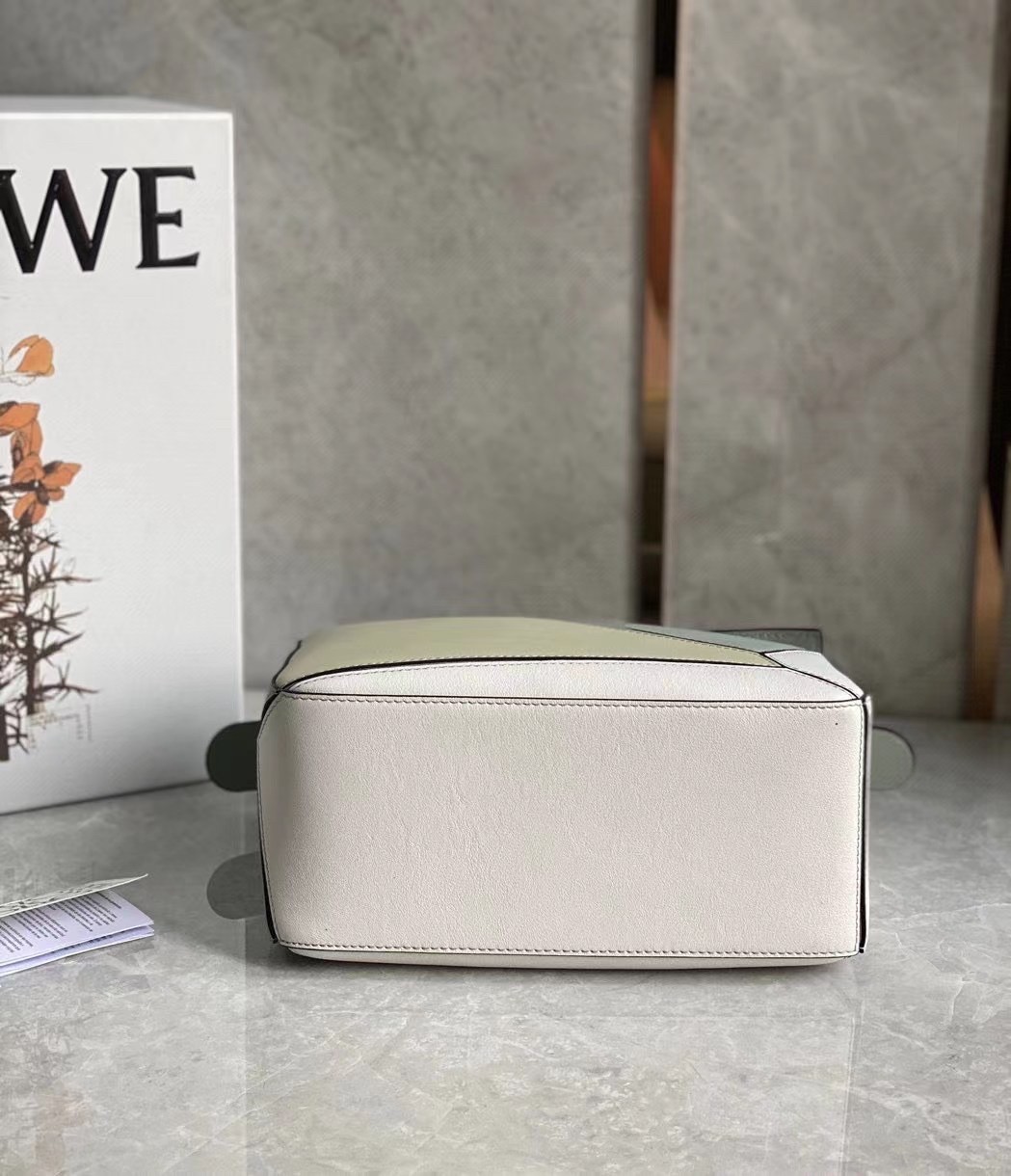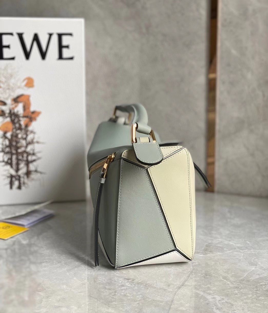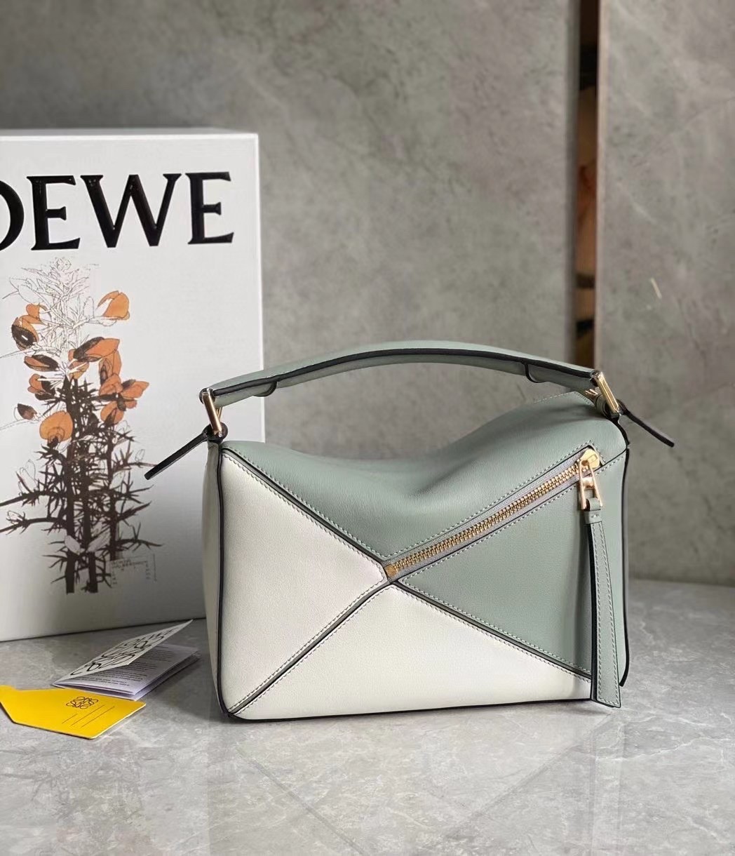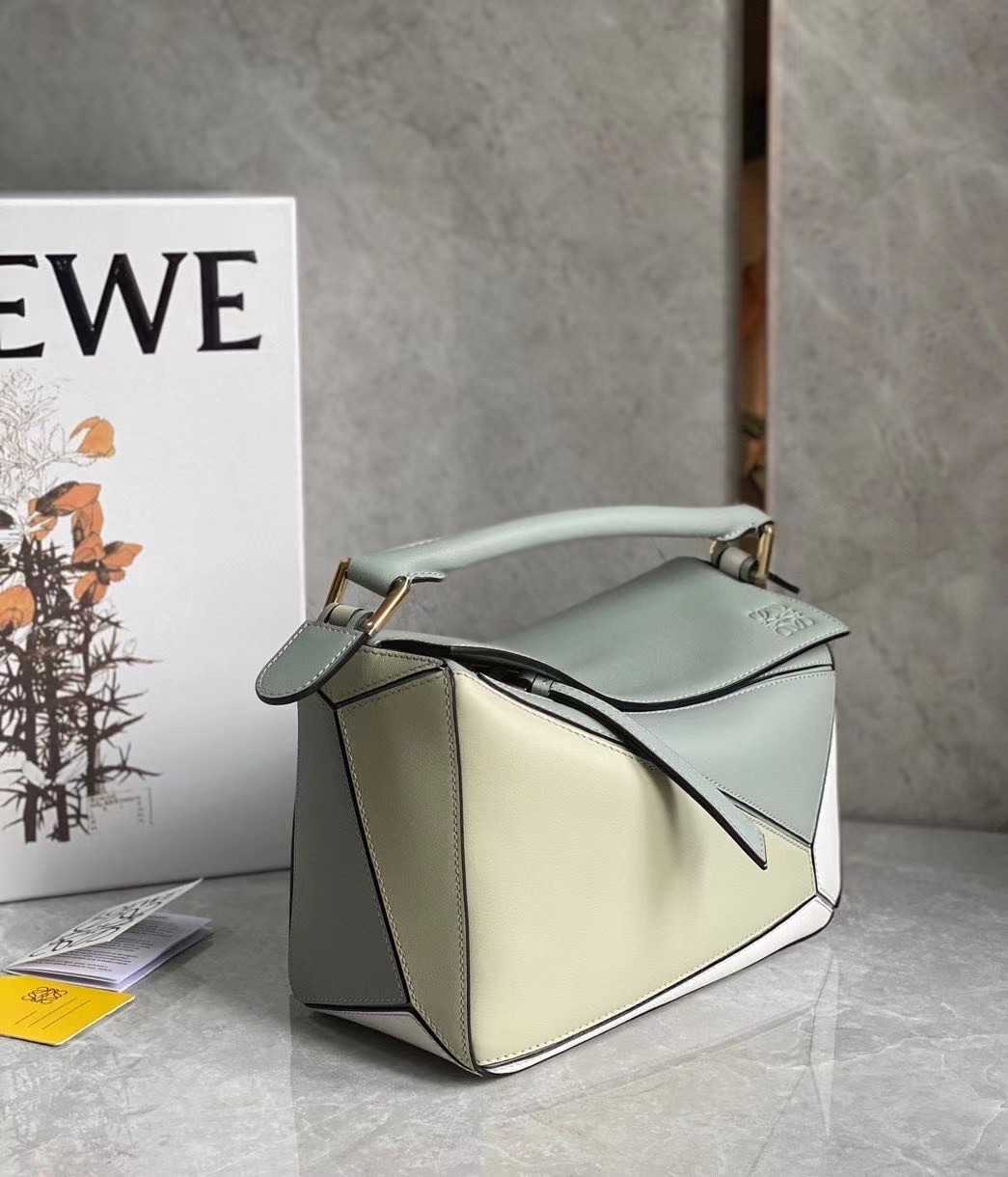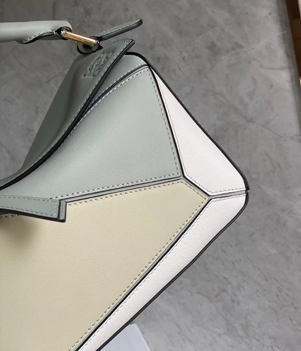 The first bag designed after Jonathan Anderson was appointed creative director in 2014, the Puzzle bag from LOEWE exudes modern artistry with its innovative cuboid shape that takes 524 actions to complete and perfect. Crafted from smooth leather and suspended from a chunky top handle, this small color-block version is defined by the segmented outer pattern and slouchy silhouette that can be conveniently folded completely flat for compact storage.