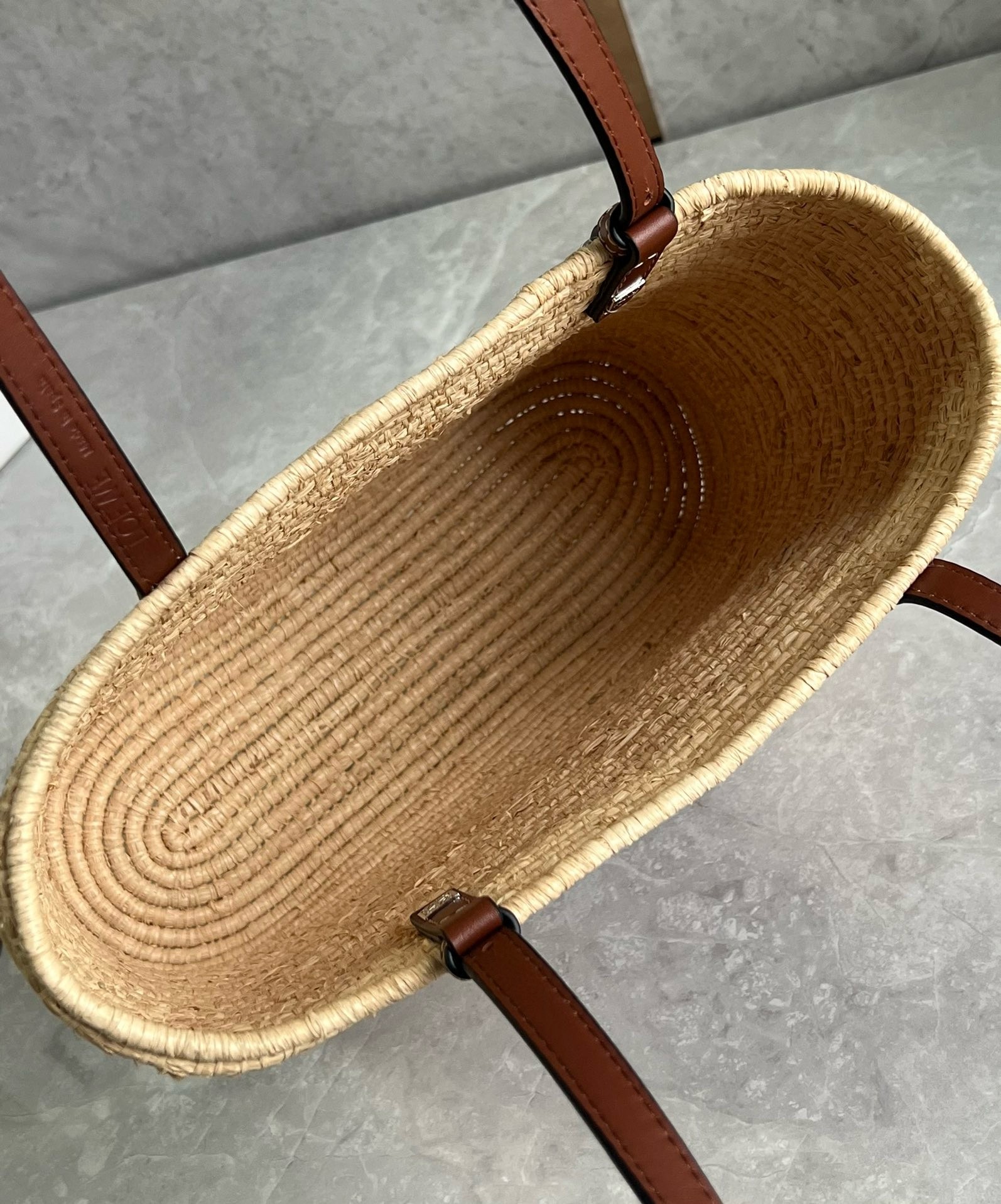 Tapping into the ever-enduring wicker basket bag obsession, LOEWE presents this iteration in collaboration with Paula*s Ibiza 每 a collection of pieces inspired by the carefree, breezy aesthetic of the Balearic Islands. Capturing its Spanish roots, this hand-woven Palm leaf bag is accented with butter-soft leather trims. Stamped with the iconic Anagram patch to the front, the twin top handles and unlined interior allude to the rustic styles you’d find in markets.