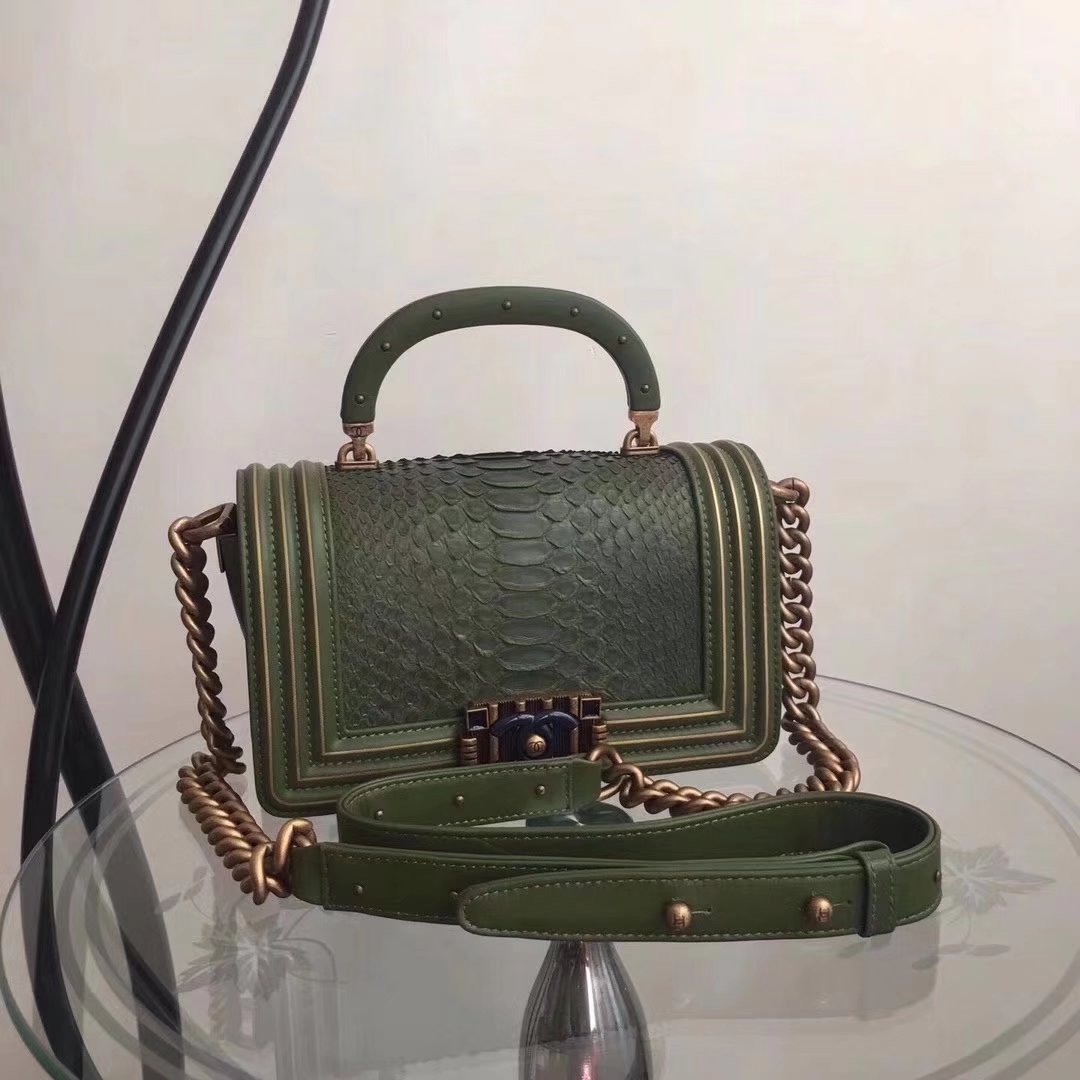 Recensisci per primo "Original Quality Chanel Green Python 20cm Boy Bag with Top Handle Bronze Hardware".