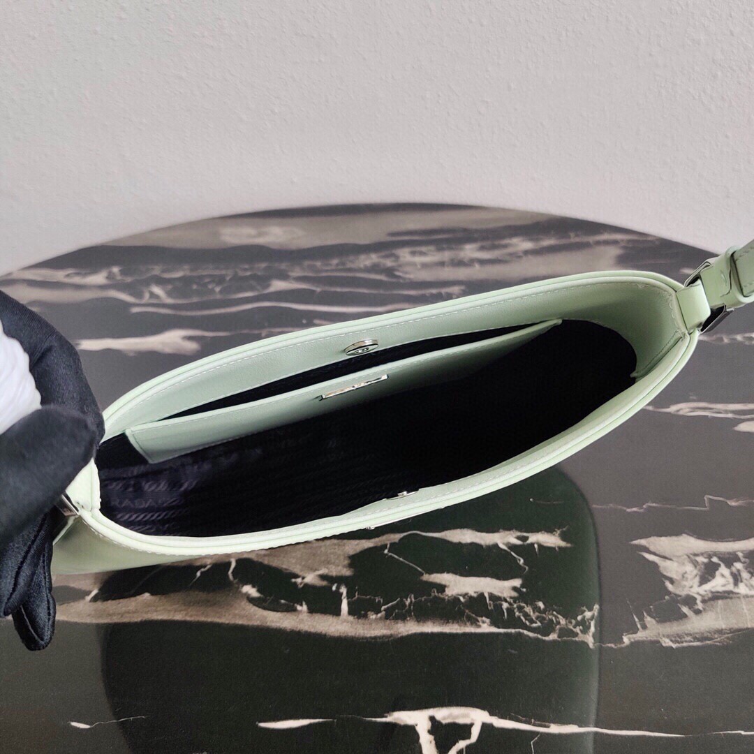 Meet the newest member of the Prada bag family: the Cleo baguette bag. A modern interpretation of a style from the archives, this brushed-leather design is lined with signature nylon and finished with the iconic triangular emblem. Expect to see it on the arms of fashion’s finest this season.