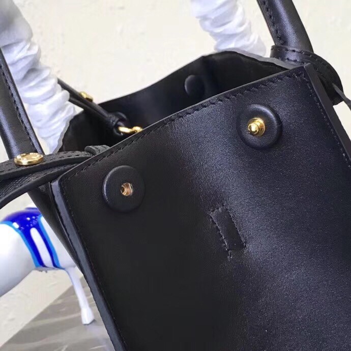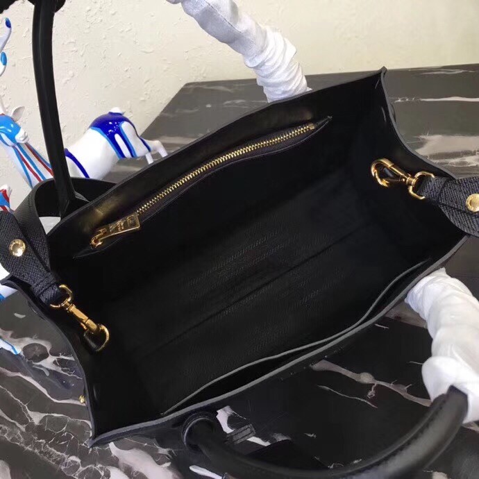 The design of the Monochrome Bag is a combination of Prada*s previous released tote bags. It could be that they have taken all the best components and put them together to create a complete new tote. It is made with the Prada logo that matches to the color of the bag. The size is big enough to store your small laptop or documents for work. The look is stylish as well and can be used for special occasions as well as casual days.
