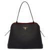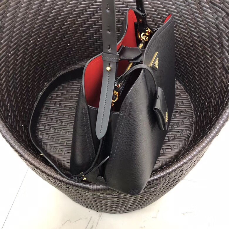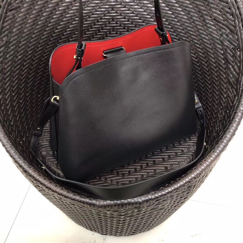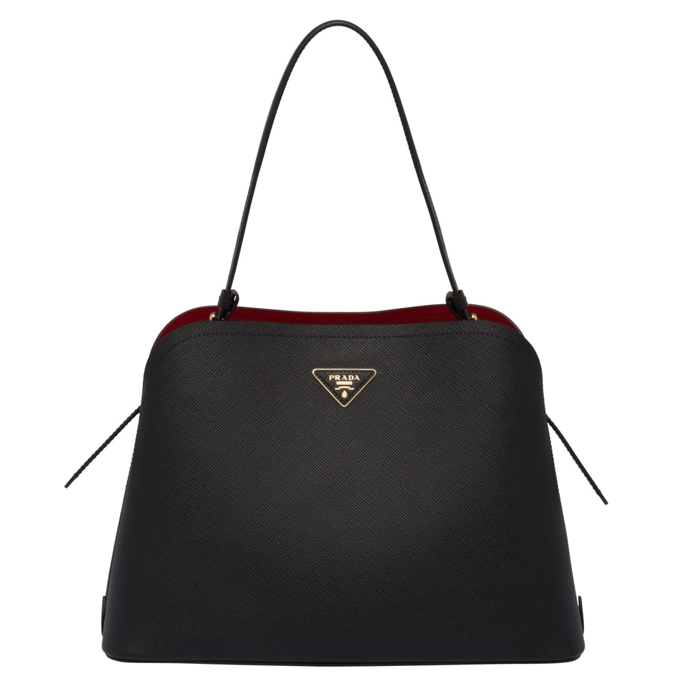 The Prada Matinee handbag made of Saffiano leather stands out for its metal triangle logo and detachable adjustable leather shoulder strap.