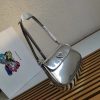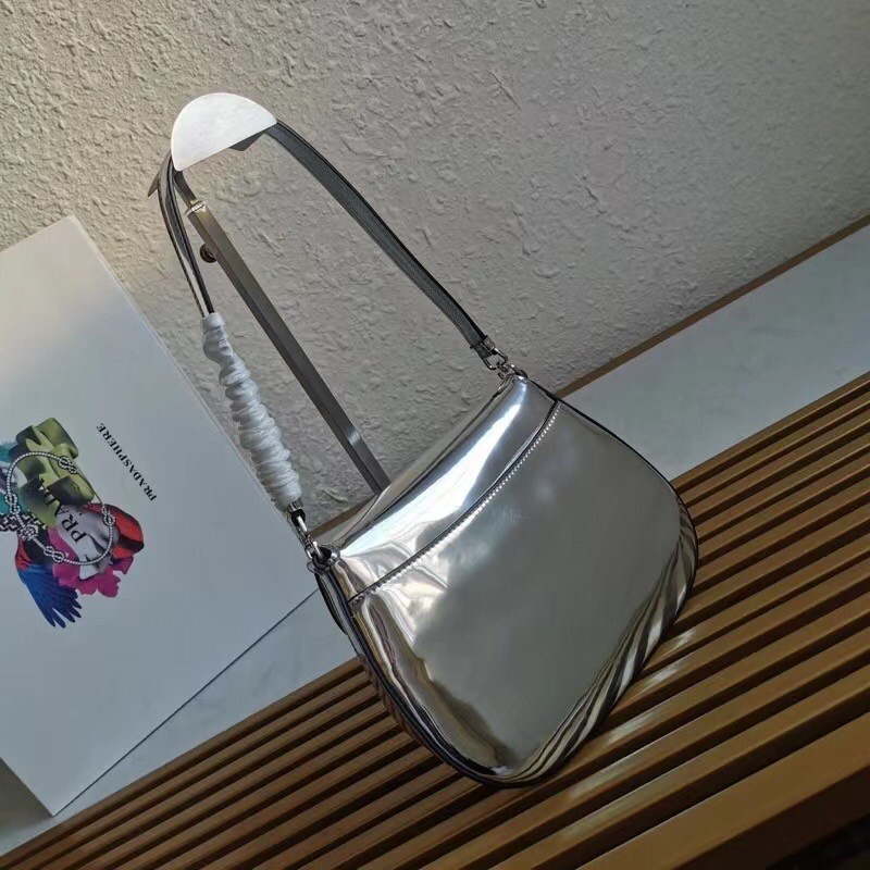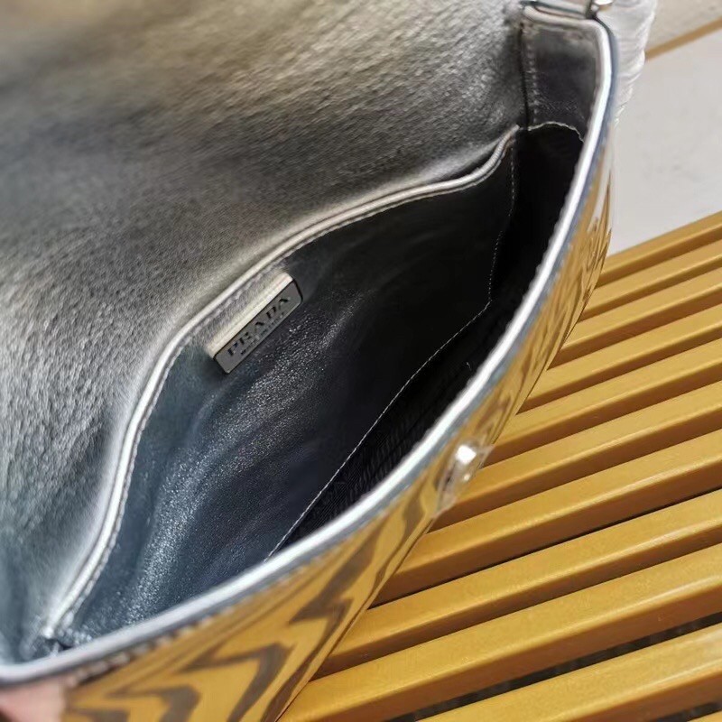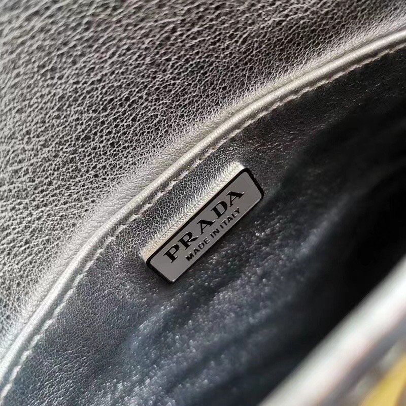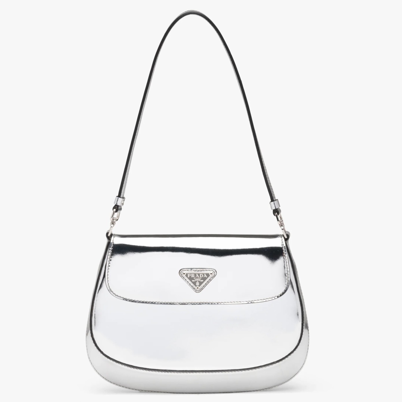 Prada*s Cleo shoulder bag is shaped to a minimalist form, showcasing the label*s penchant for understated elegance. Crafted from glossy spazzolato leather with a front flap, it*s hallmarked with the house*s enamelled triangular logo and opens via a magnetic front flap to a nylon lining. Wear it over the shoulder using the slim single strap.