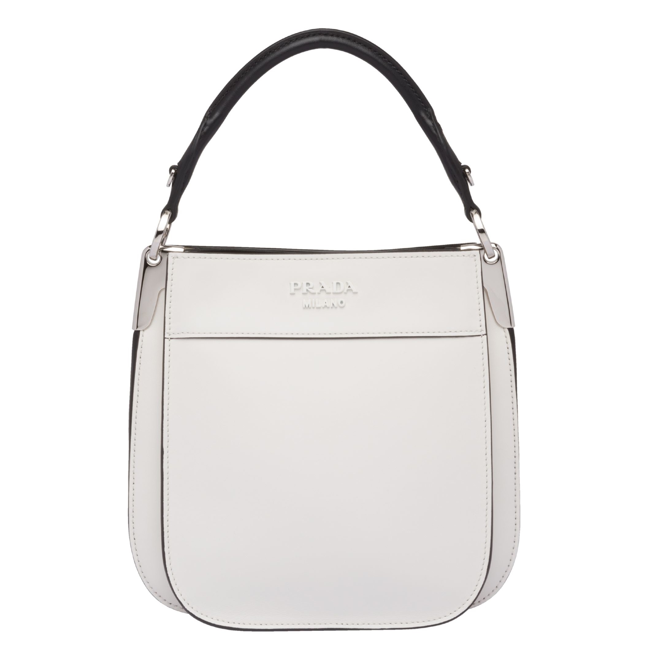 Prada presents this shoulder bag, a modern accessory with rounded lines. Coming in a compact version, this piece features a practical and elegant multi-compartment design. The finesse of the stitching reminds us of the attention to detail and the sense of refinement that the Italian fashion house holds dear. Wear it on your shoulder or carry it by hand, as you please, thanks to its handle and shoulder strap.