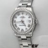 Rolex Datejust 178384 White Roman Numeral Dial 31MM Lady Replica Watch,has a White Gold 31 mm Round Case with Screw Down Crown,White Gold bezel with set diamonds.White Dial with Roman Dial Markers. Oystersteel oyster bracelet with Concealed Folding Crownclasp will look great on your wrist.