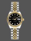 Rolex Datejust 179173 Black Diamond Dial Fluted Bezel 26MM Lady Replica Watch,Stainless steel oyster case 26.0 mm in diameter.Yellow gold fluted bezel. Scratch resistant sapphire crystal with cyclops magnifier.Black Dial with Diamond Hour Markers.Date calendar at 3 o’clock aperture. Stainless steel yellow gold jubilee bracelet with a hidden clasp.
