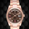 Rolex Day-Date 118205 Chocolate Brown Dial 36mm Unisex Replica Watch. 36mm stainless steel case.Diamonds and Rubies Set on Chocolate Brown Dial.Everose Gold Domed Bezel.Our this watch uses a folding buckle strap, Everose Gold Case and Oyster Bracelet, Scratch Resistant Sapphire Crystal.