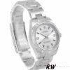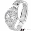 Rolex Oyster Perpetual 177210 Silver Dial Blue Hour Markers 31mm Lady Replica Watch has a Stainless Steel 31 mm Round Case with Screw Down Crown and a Engine Turned Bezel Bezel. Silver dial with applied blue hour markers and Arabic numerals,The reliable Stainless Steel Oyster Bracelet will look great on your wrist.