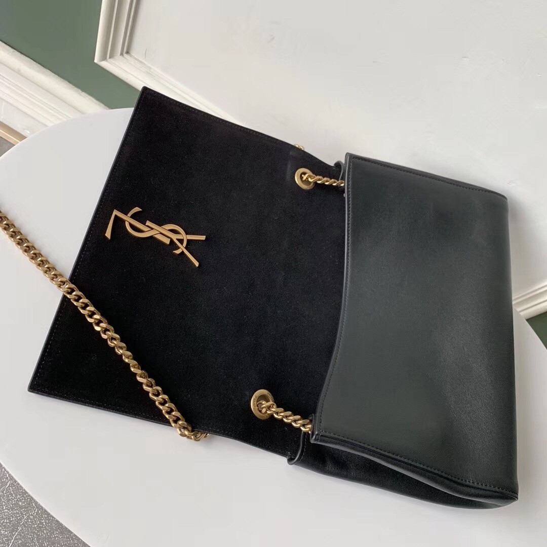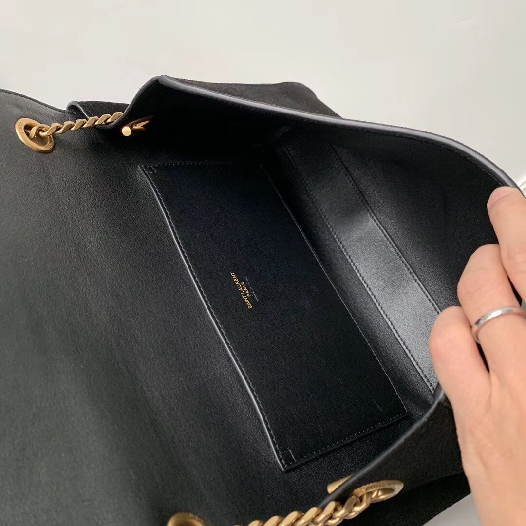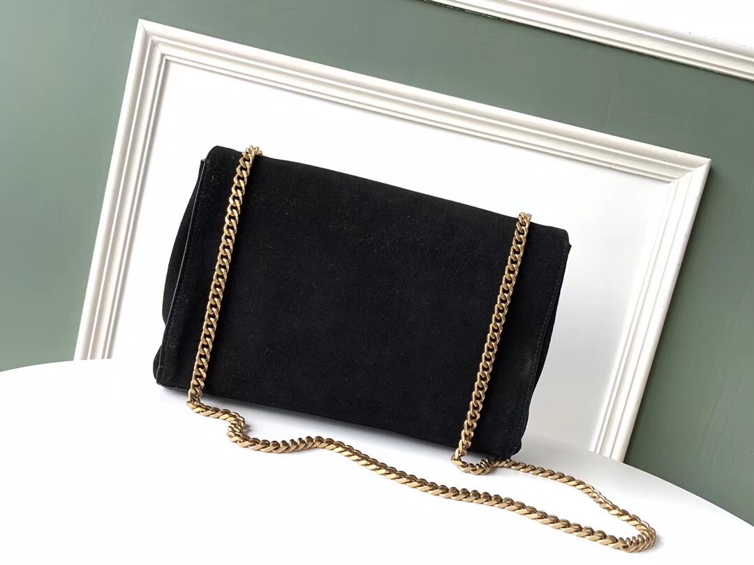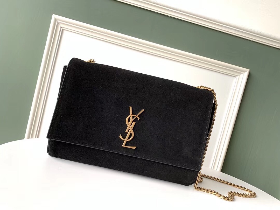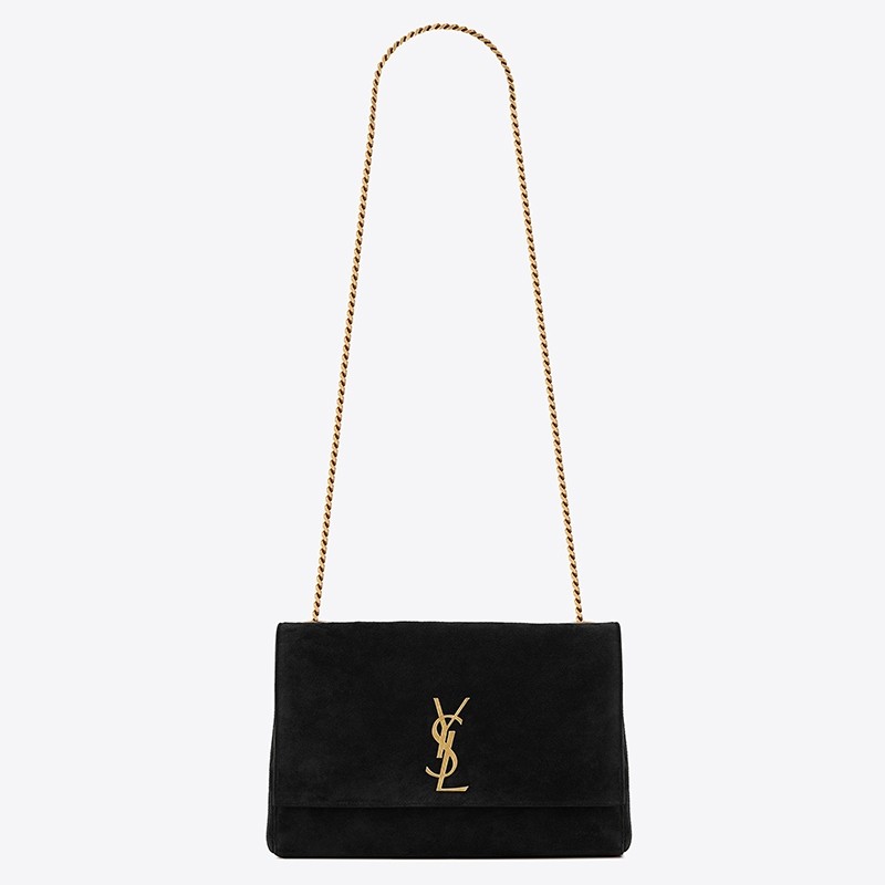 Fondata nel 1961 dall'innovativo stilista Yves Saint Laurent, la casa di moda francese di lusso Saint Laurent fonde un'esperta lavorazione artigianale con l'inconfondibile stile rock 'n' roll del marchio. Realizzata in pelle scamosciata e pelle di vitello liscia, questa borsa Kate media reversibile di Saint Laurent ha le dimensioni perfette per andare dalla scrivania alla cena. Caratterizzata da tracolla a catena dorata, placca logo dorata, chiusura a libro con magnete e scomparto principale interno.