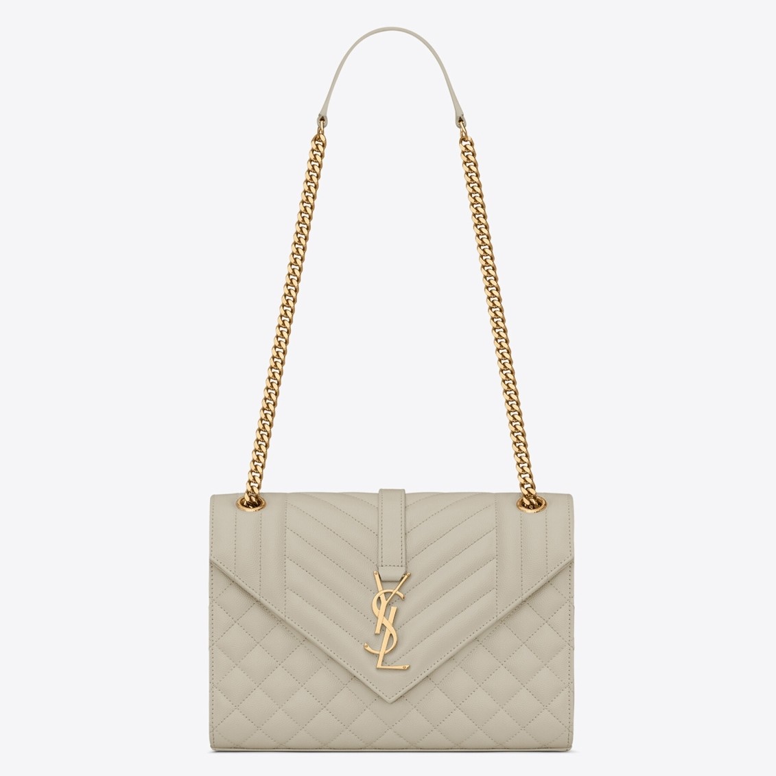 Instantly recognisable courtesy of the ‘YSL’ logo punctuating the matalass?? leather, Saint Laurent’s swoon-worthy shoulder bag is loaded with style prowess. Rendered in Italy, the envelope silhouette boasts a magnetic fastening opening up to reveal a roomy interior with a slip pocket, while the classic chain strap exudes after-dark allure.