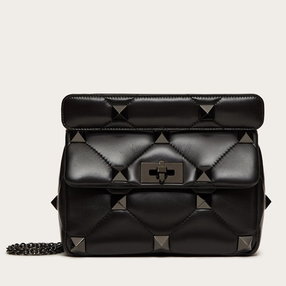 Valentino Garavani’s ‘Roman Stud’ shoulder bag is chic, versatile and statement-making. It’s made from soft quilted leather and embellished with tonal, hand-applied ‘Rockstuds’. Attach the chain strap to wear it cross-body to events.