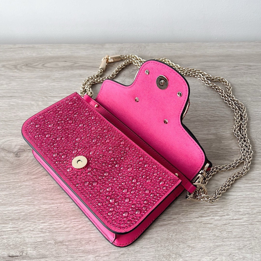 Valentino Garavani’s shoulder bag is intricately decorated with scores of rhinestone appliqu?? and rhinestone-covered VLogo Signature element, adding a glamorous element to both day and evening outfits. It’s been made from panels of leather and features the brand’s signature ‘VLOGO’ plaque at the front flap. Stow your phone, cardholder and keys inside.