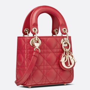 Dior Micro Lady Dior Bag In Red Cannage Lambskin