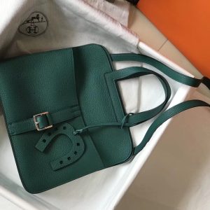 Hermes Halzan 31cm Bag In Malachite Clemence Leather