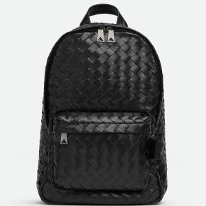 Bottega Veneta Medium Backpack In Black Intrecciato Calfskin