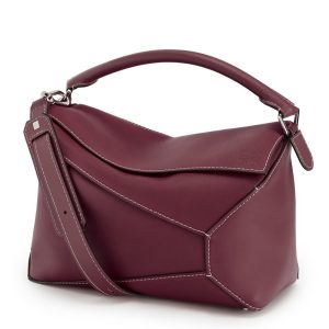 Loewe Large Puzzle Bag In Bordeaux Calfskin