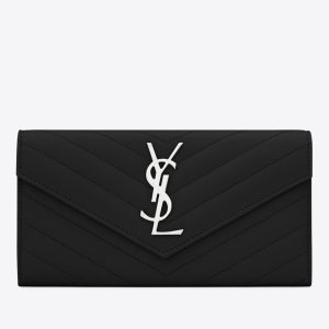 Saint Laurent Large Monogram Flap Wallet In Black Grained Leather