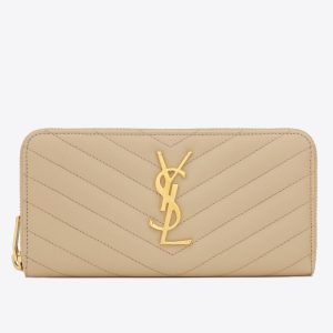 Saint Laurent Monogram Zip Around Wallet In Powder Grained Leather
