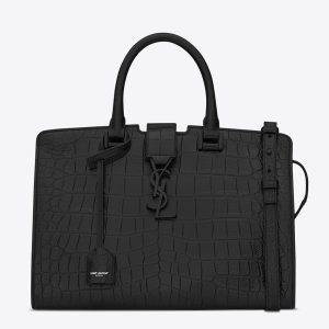 Saint Laurent Small Cabas YSL Bag In Black Crocodile Embossed Leather