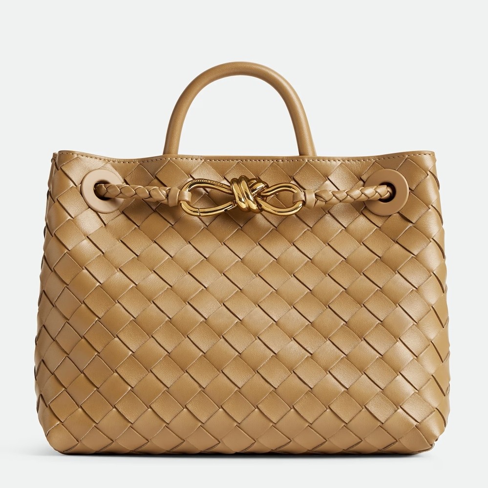 Bottega Veneta Andiamo Small Bag in Praline Intrecciato Lambskin
