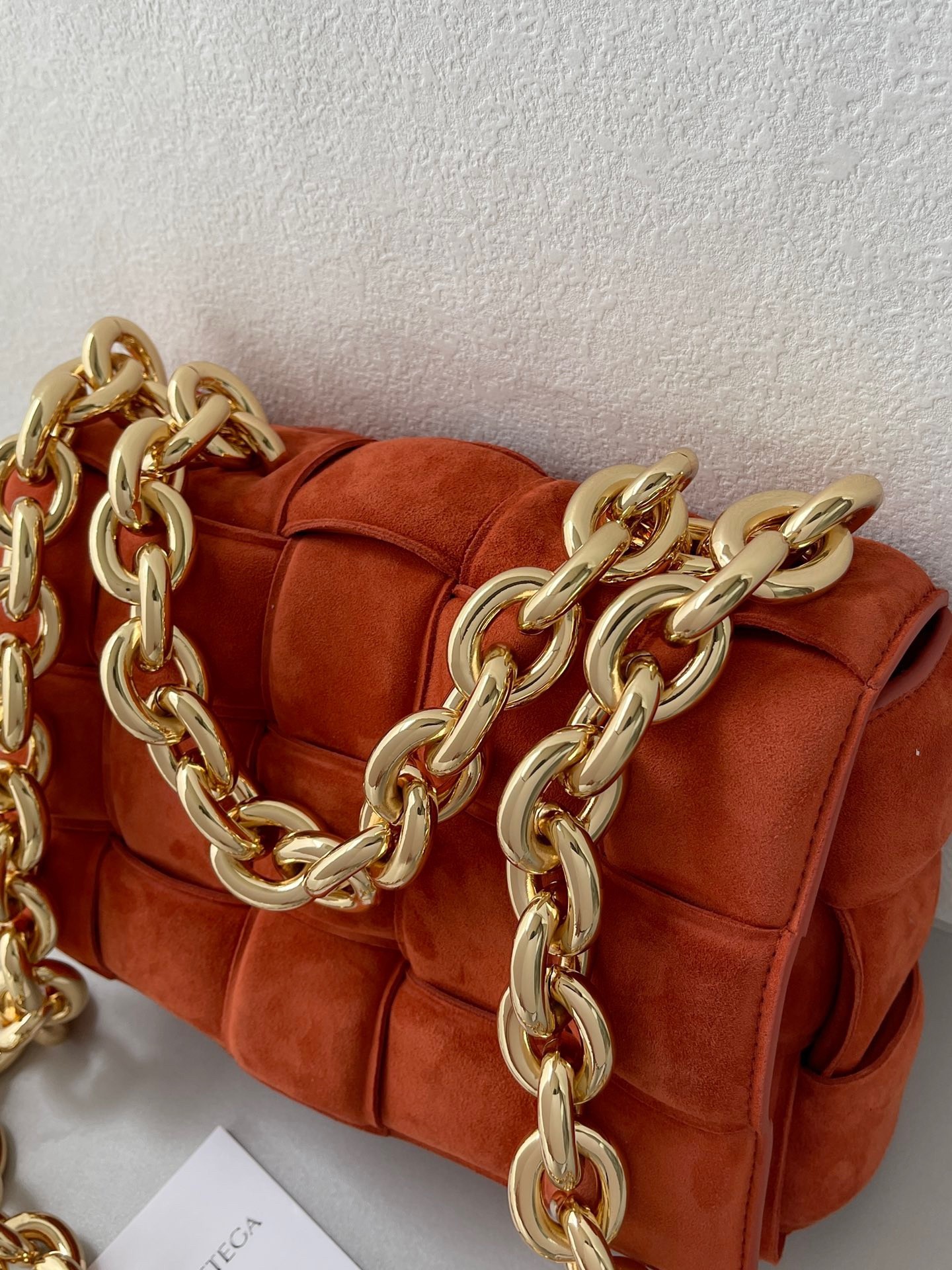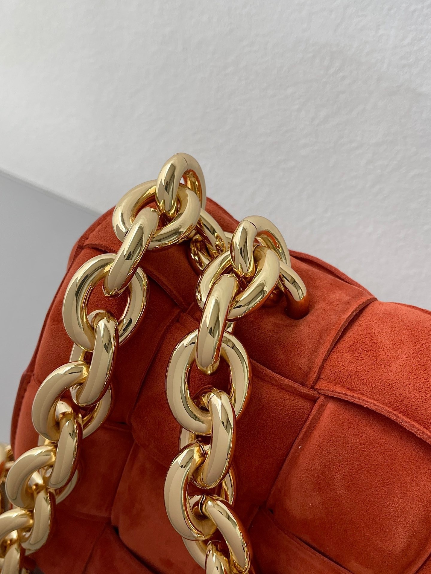 Daniel Lee takes Bottega Veneta’s signature intrecciato weave and reworks it again – this time using padded strips of leather to create a puffy silhouette. This ‘Cassette’ shoulder bag unlocks to reveal a spacious interior with a zipped pocket. Match any jewelry to the chunky gold chain strap, which happens to be another new addition for Pre-Fall ’20.