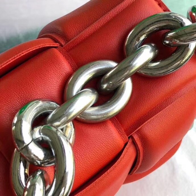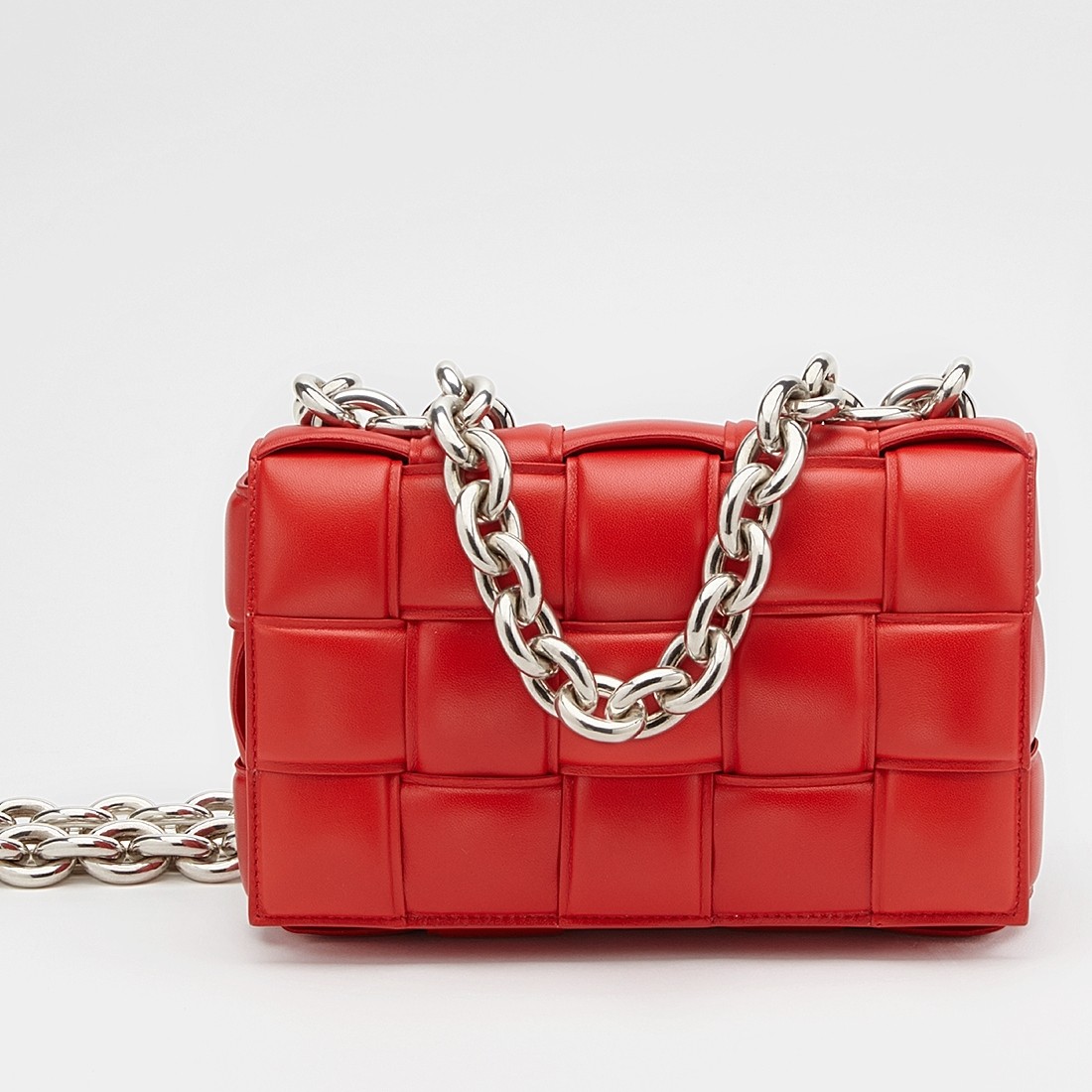 Daniel Lee takes Bottega Veneta’s signature intrecciato weave and reworks it again – this time using padded strips of leather to create a puffy silhouette. This ‘Cassette’ shoulder bag unlocks to reveal a spacious interior with a zipped pocket. Match any jewelry to the chunky gold chain strap, which happens to be another new addition for Pre-Fall ’20.