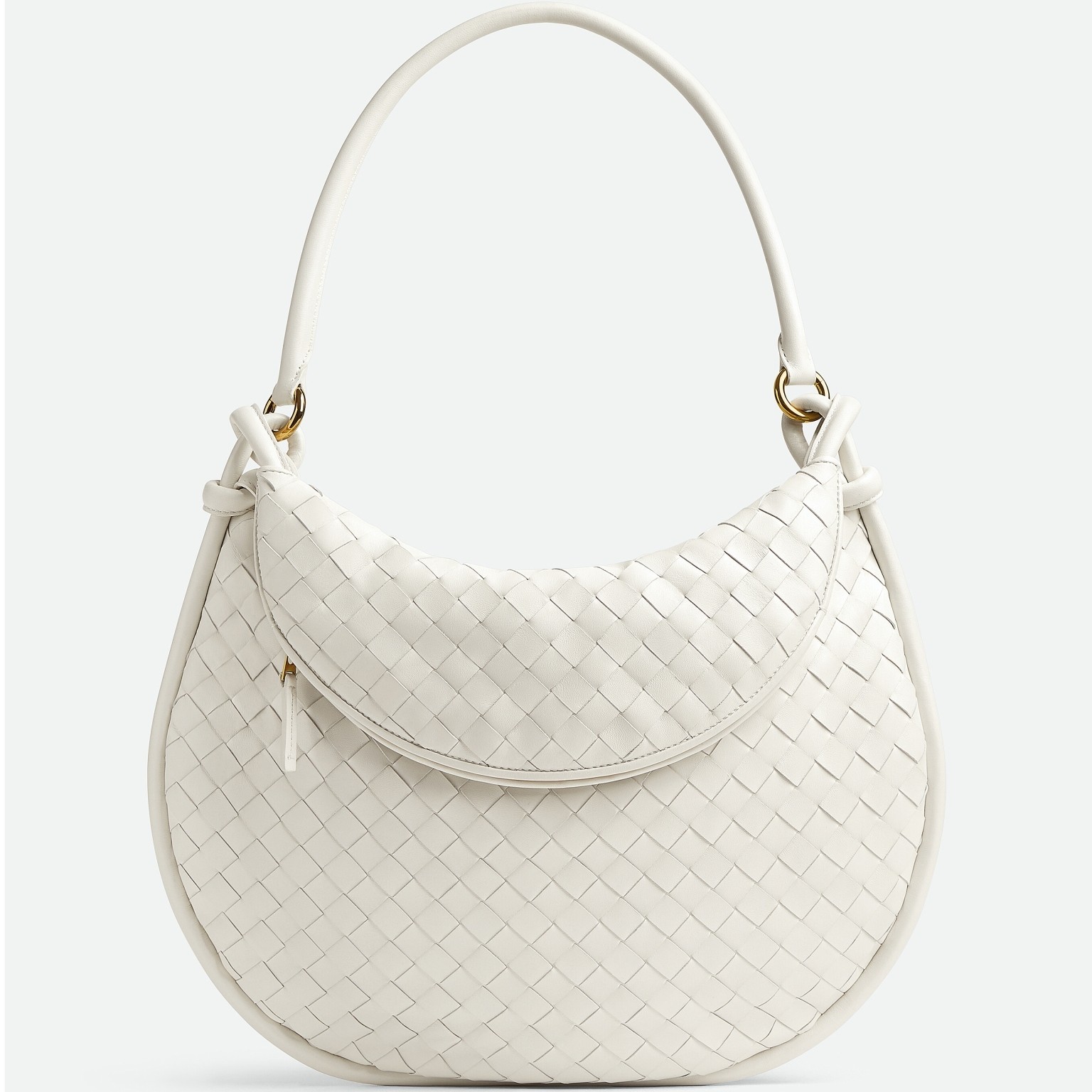 Bottega Veneta’s Gemelli shoulder bag is super roomy, especially in this large size. It’s been made from supple leather using the label’s signature intrecciato weave. Defined by its modern half-moon silhouette, the bag’s circularity is further accented by a smaller crescent-shaped pouch that sits on top of the bag’s main compartment.