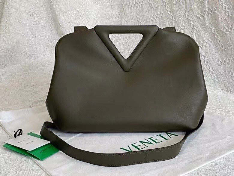 The Point Medium bag from Bottega Veneta is named for its structural top handles, which are an established house signature. Made from soft calf leather, it has a hinge fastening that opens to reveal a deceptively capacious interior. Swing yours by the knotted strap or carry it in hand as a tote.