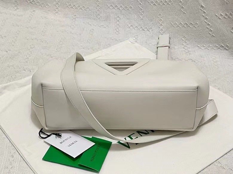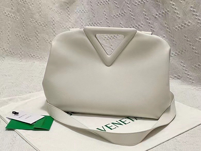 The Point Medium bag from Bottega Veneta is named for its structural top handles, which are an established house signature. Made from soft calf leather, it has a hinge fastening that opens to reveal a deceptively capacious interior. Swing yours by the knotted strap or carry it in hand as a tote.