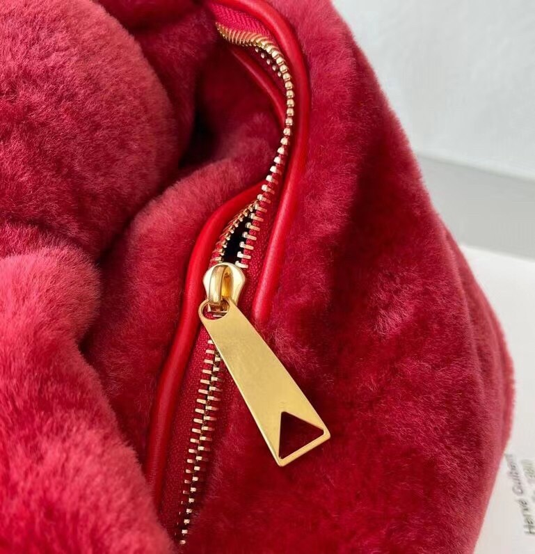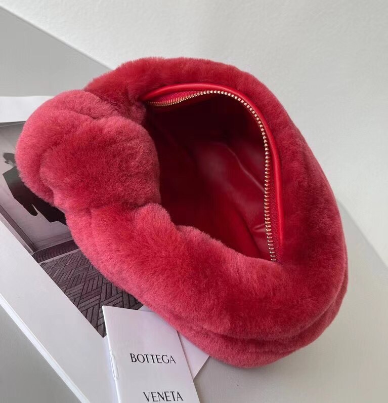 Bottega Veneta Mini BV Jodie Bag In Red Shearling