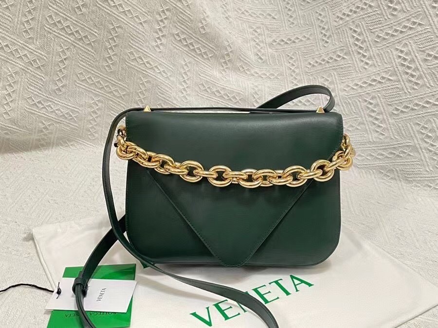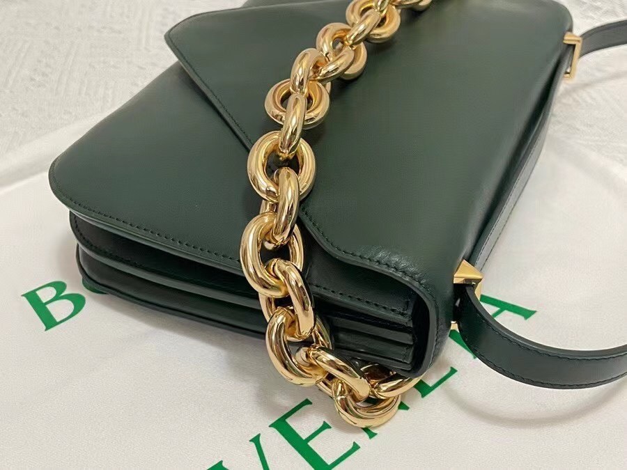 The Mount from Bottega Veneta is part of a family of bags that has acquired must-have status in fashion insider circles. This particular design features the now-signature golden chainlink strap and pointed foldover flap. In terms of practicality, it’s made from smooth calfskin leather, and is equipped with a detachable strap for shoulders and cross-body.