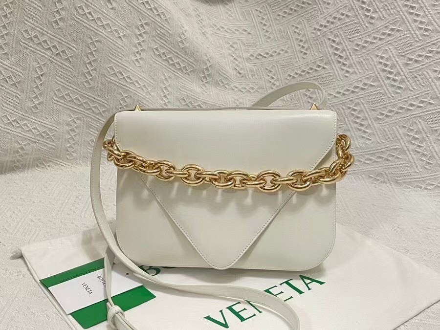 The Mount from Bottega Veneta is part of a family of bags that has acquired must-have status in fashion insider circles. This particular design features the now-signature golden chainlink strap and pointed foldover flap. In terms of practicality, it’s made from smooth calfskin leather, and is equipped with a detachable strap for shoulders and cross-body.