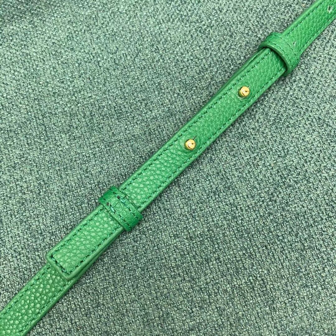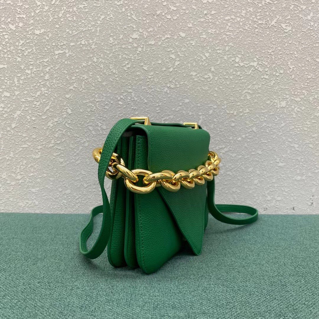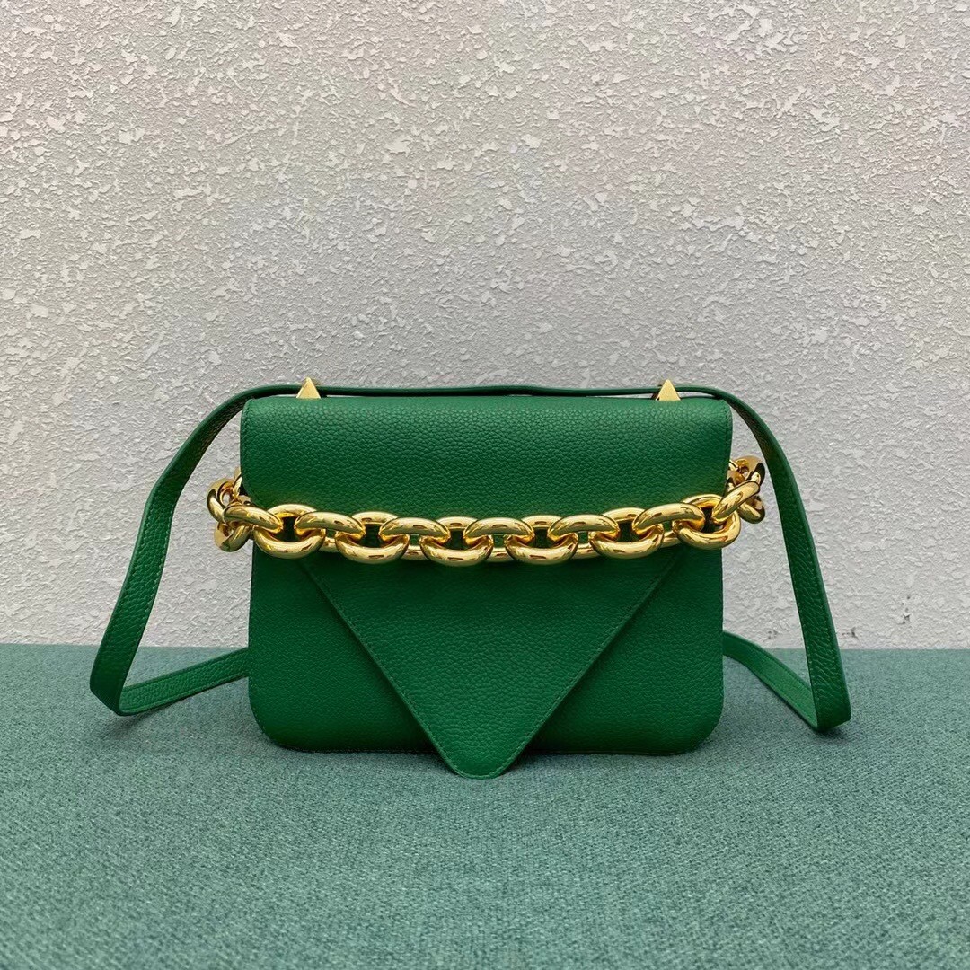 The Mount from Bottega Veneta is part of a family of bags that has acquired must-have status in fashion insider circles. This design features the now-signature golden chainlink strap and pointed foldover flap. In terms of practicality, it’s made from grained leather, and is equipped with a detachable strap for shoulders and cross-body.
